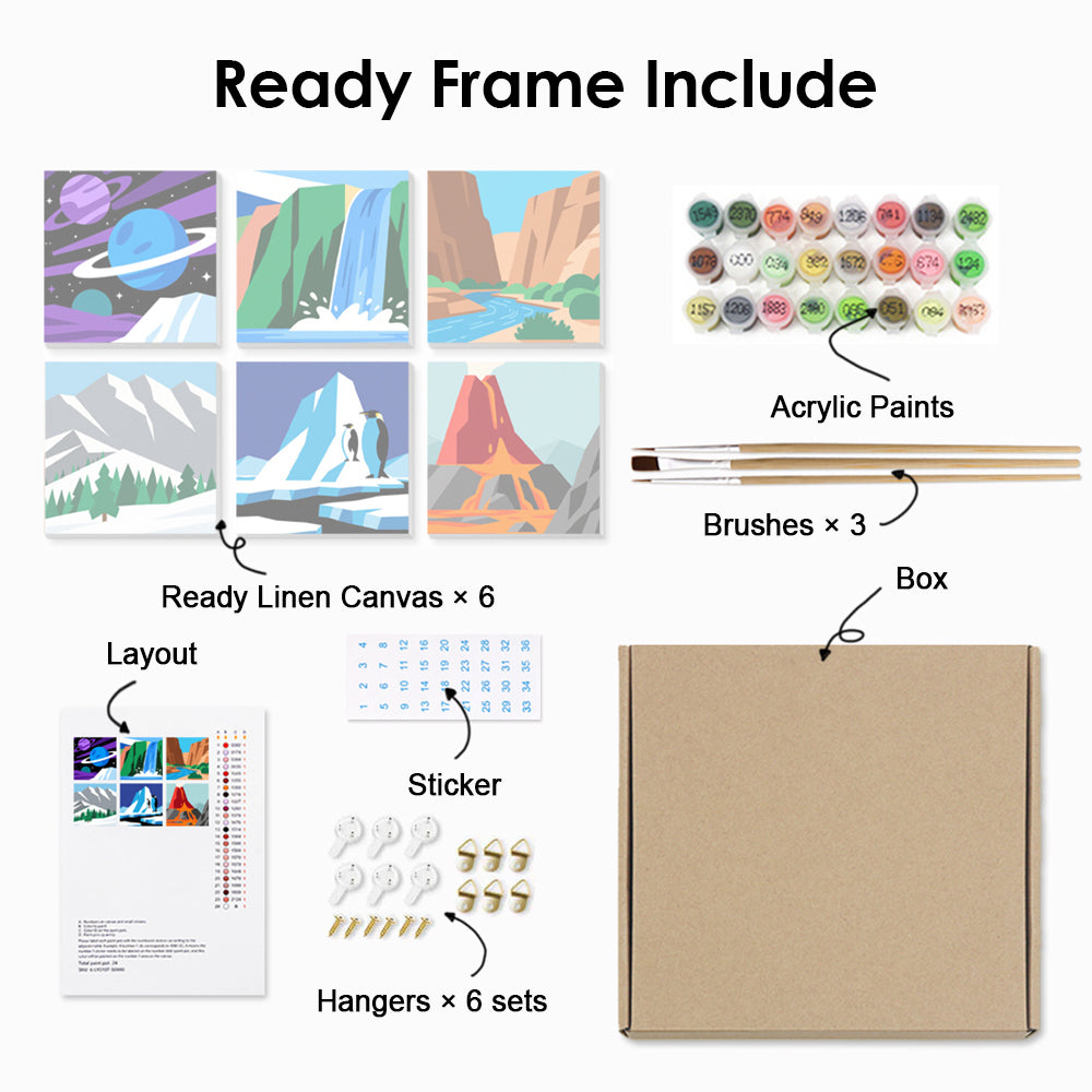 Mountains and Waterfall 6 Pieces Mini Paint by Numbers