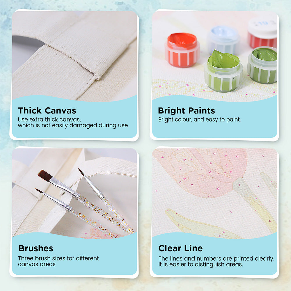Easy to Paint - The Paint-by-Numbers set is easy to use. Each area of the canvas is numbered and corresponds to a color. Follow the instructions, paint by numbers, and complete the picture.