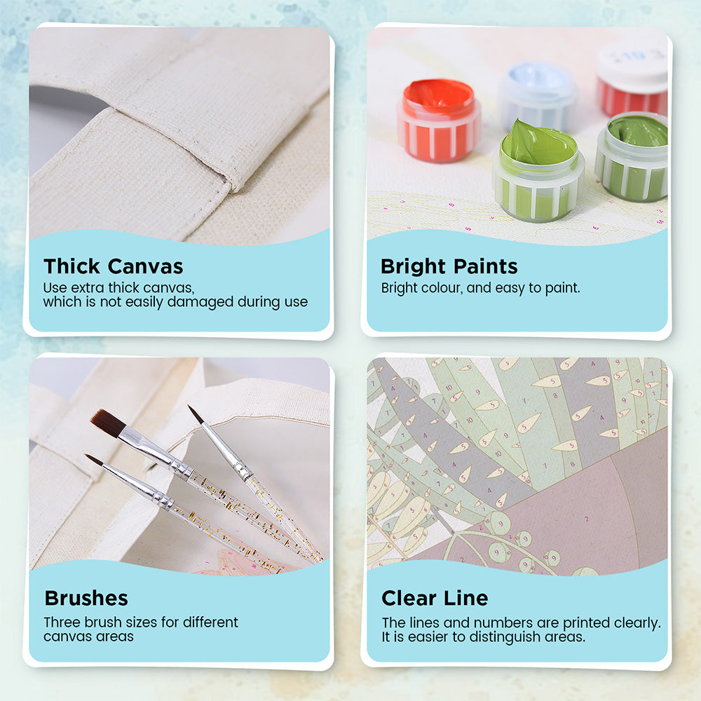 Easy to Paint - The Paint-by-Numbers set is easy to use. Each area of the canvas is numbered and corresponds to a color. Follow the instructions, paint by numbers, and complete the picture.
