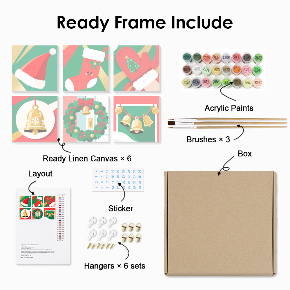 Cartoon Christmas Objects 6 Pieces Mini Paint by Numbers