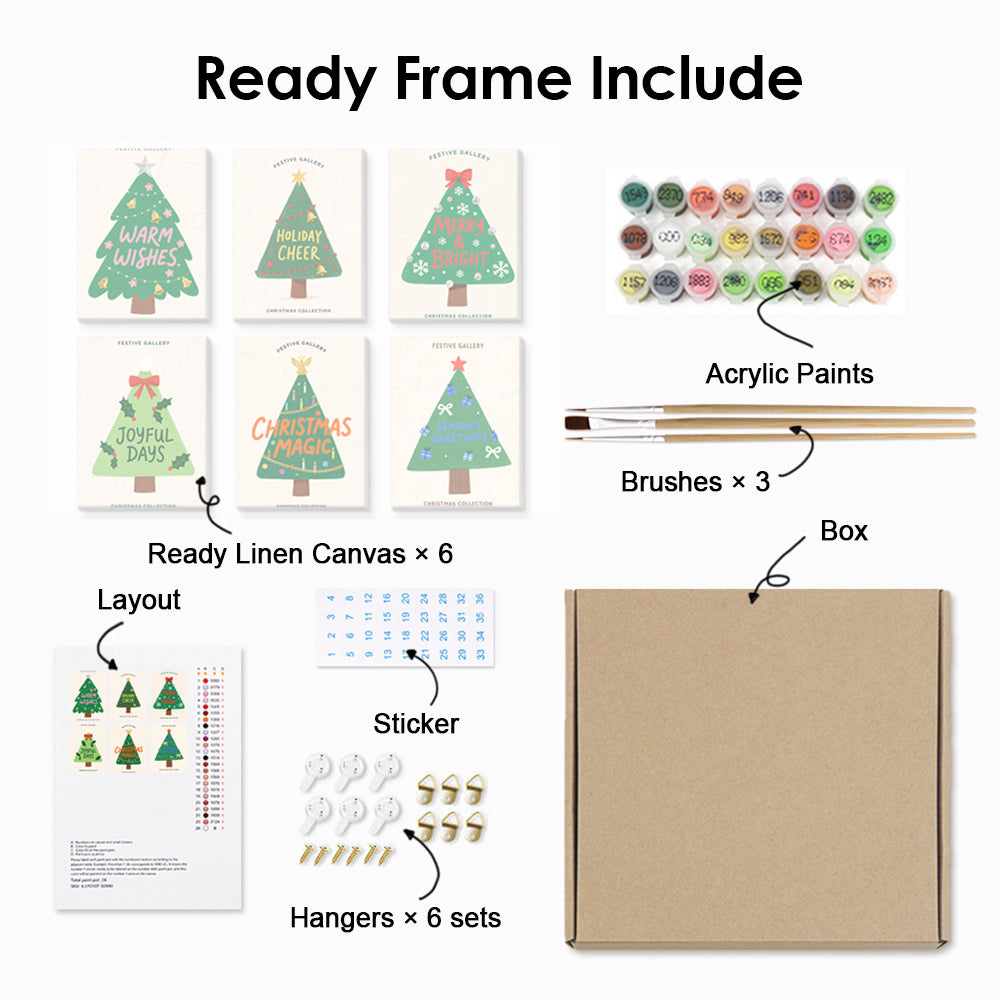 Green Christmas Trees 6 Pieces Mini Paint by Numbers