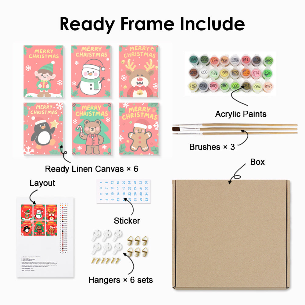 Merry Christmas to the Animals 6 Pieces Mini Paint by Numbers