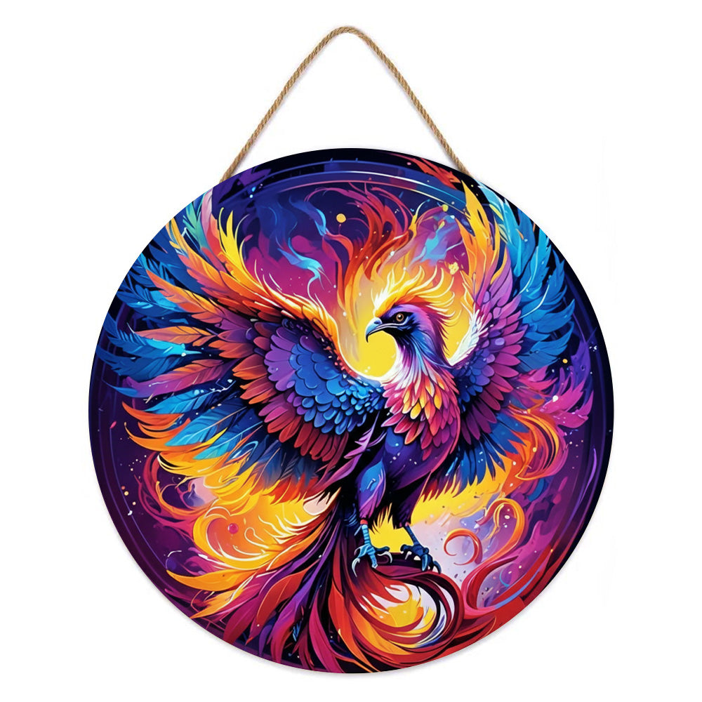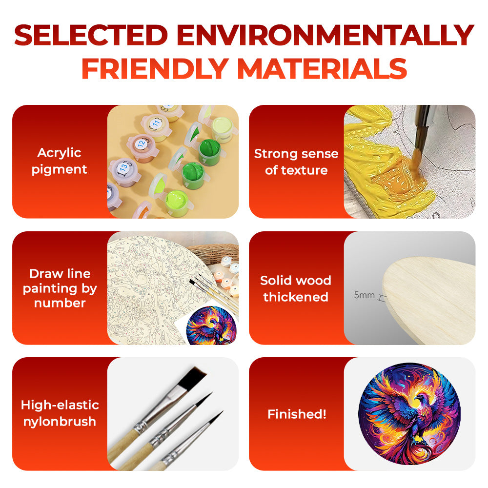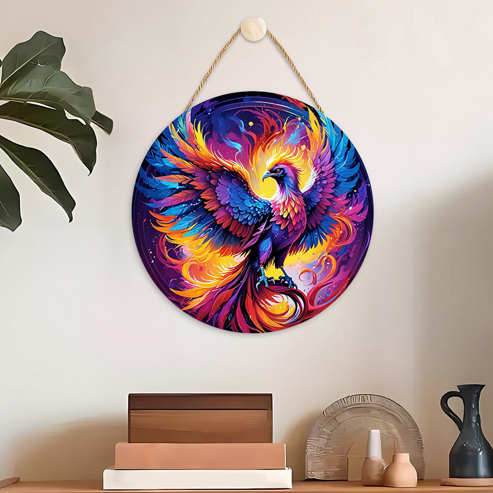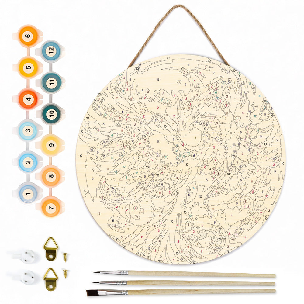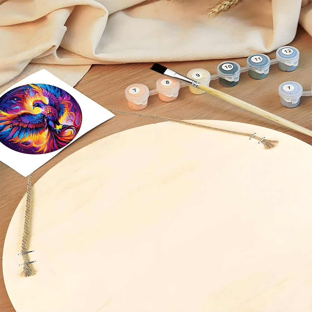 Paint by Numbers on Wood Slice - A Magnificent Phoenix Reborn from the Ashes