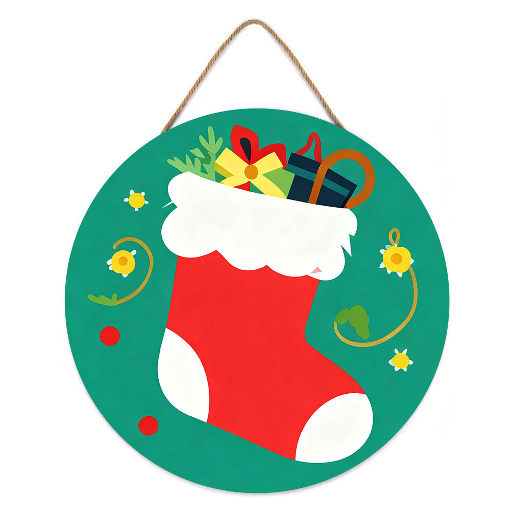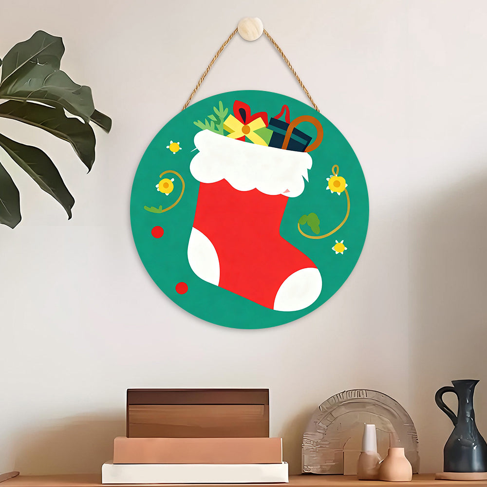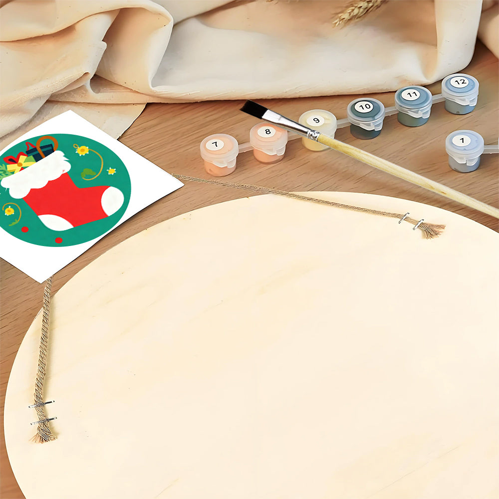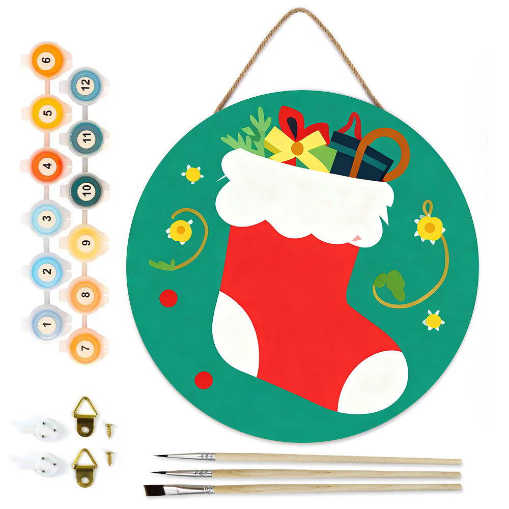 Paint by Numbers on Wood Slice - Christmas Stocking filled with Gifts
