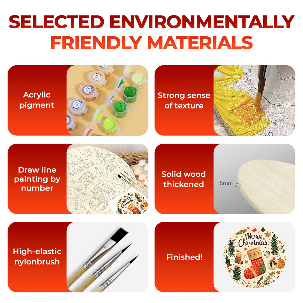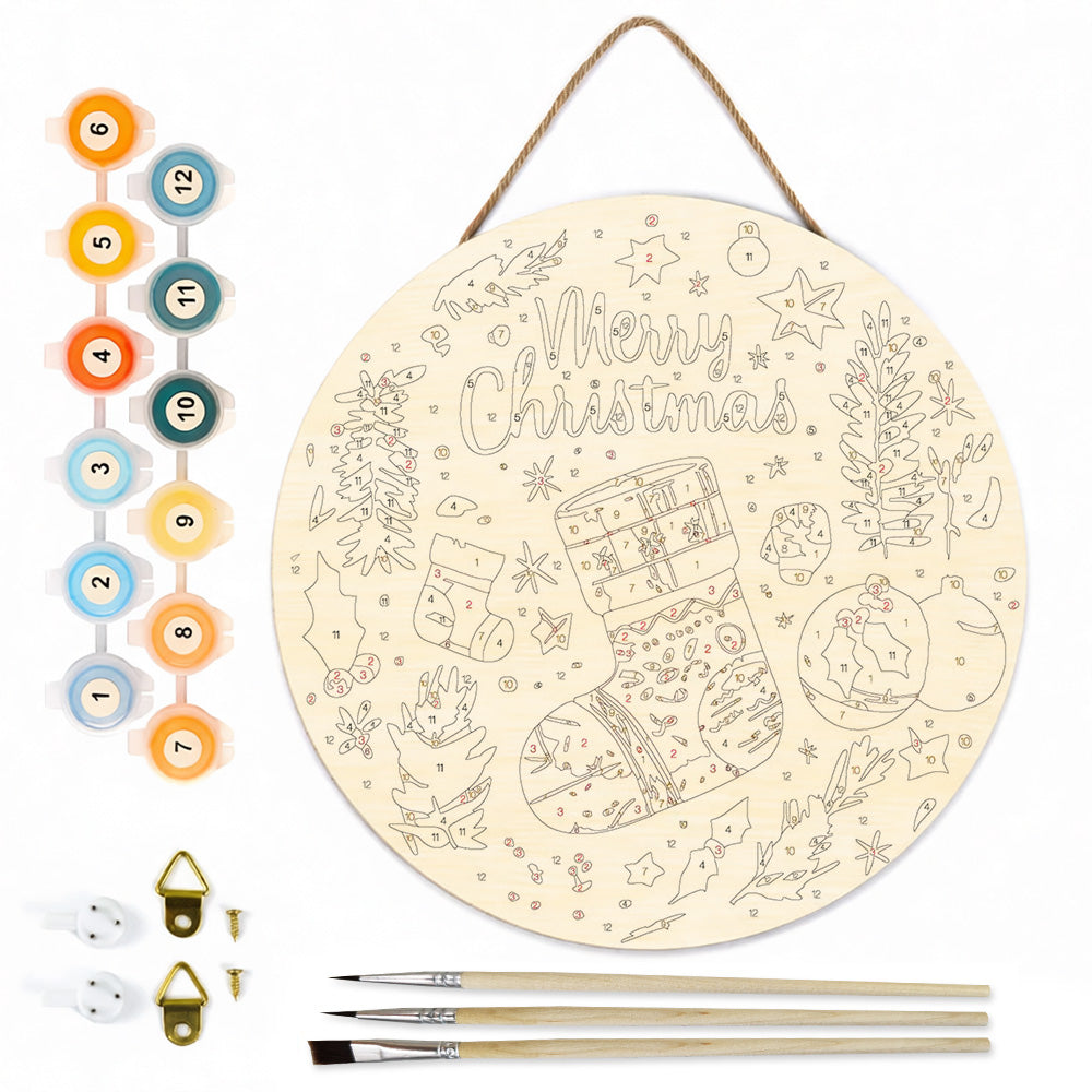 Paint by Numbers on Wood Slice - Christmas Stocking