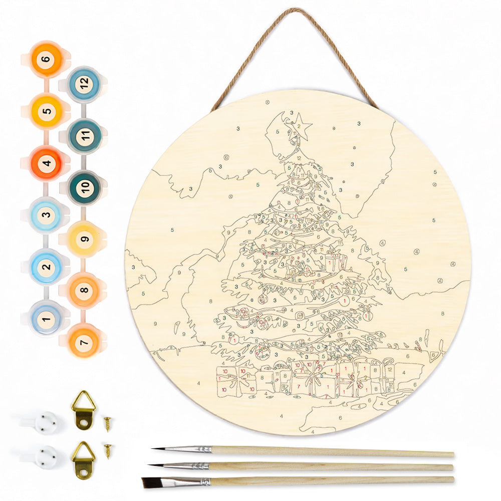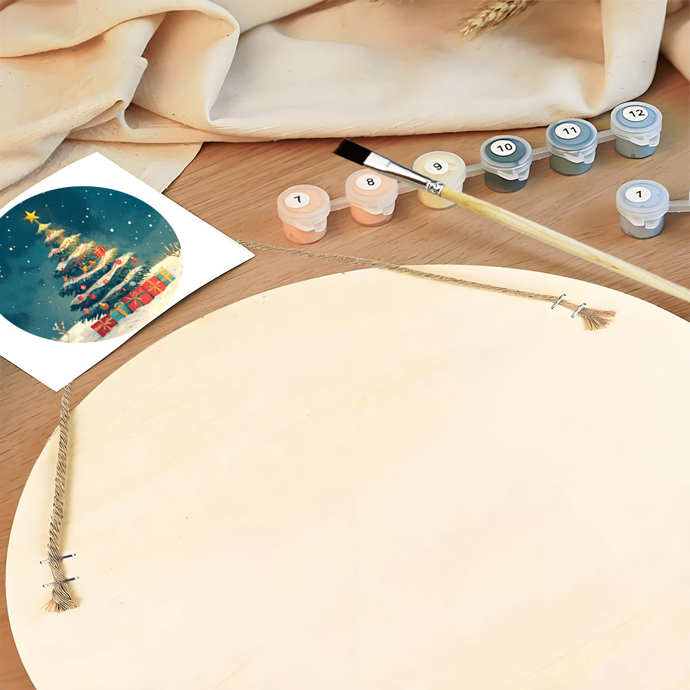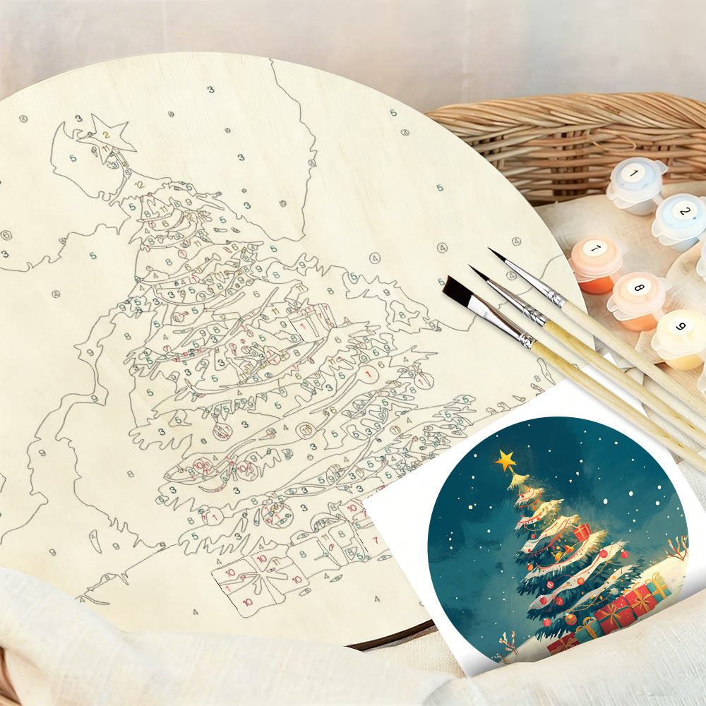 Paint by Numbers on Wood Slice - Christmas Tree and Gifts