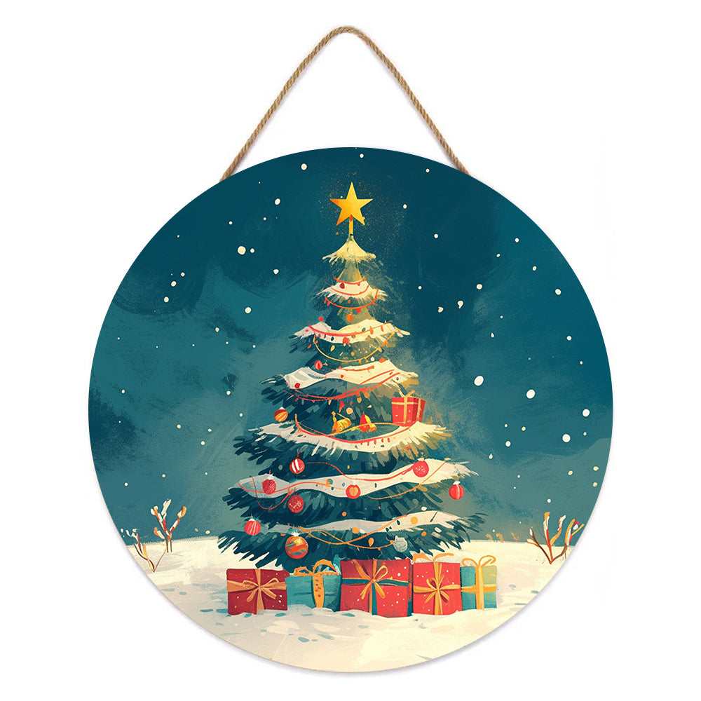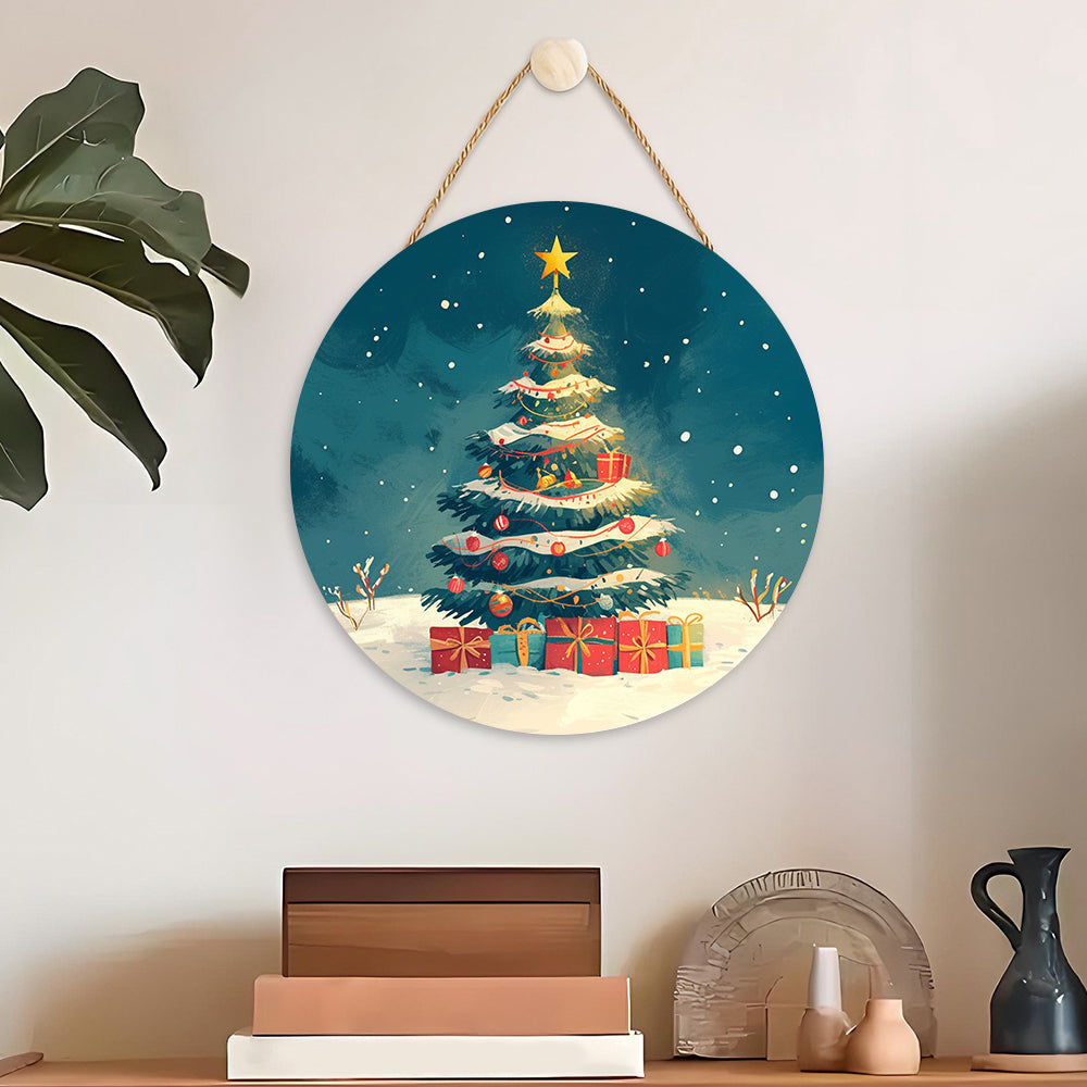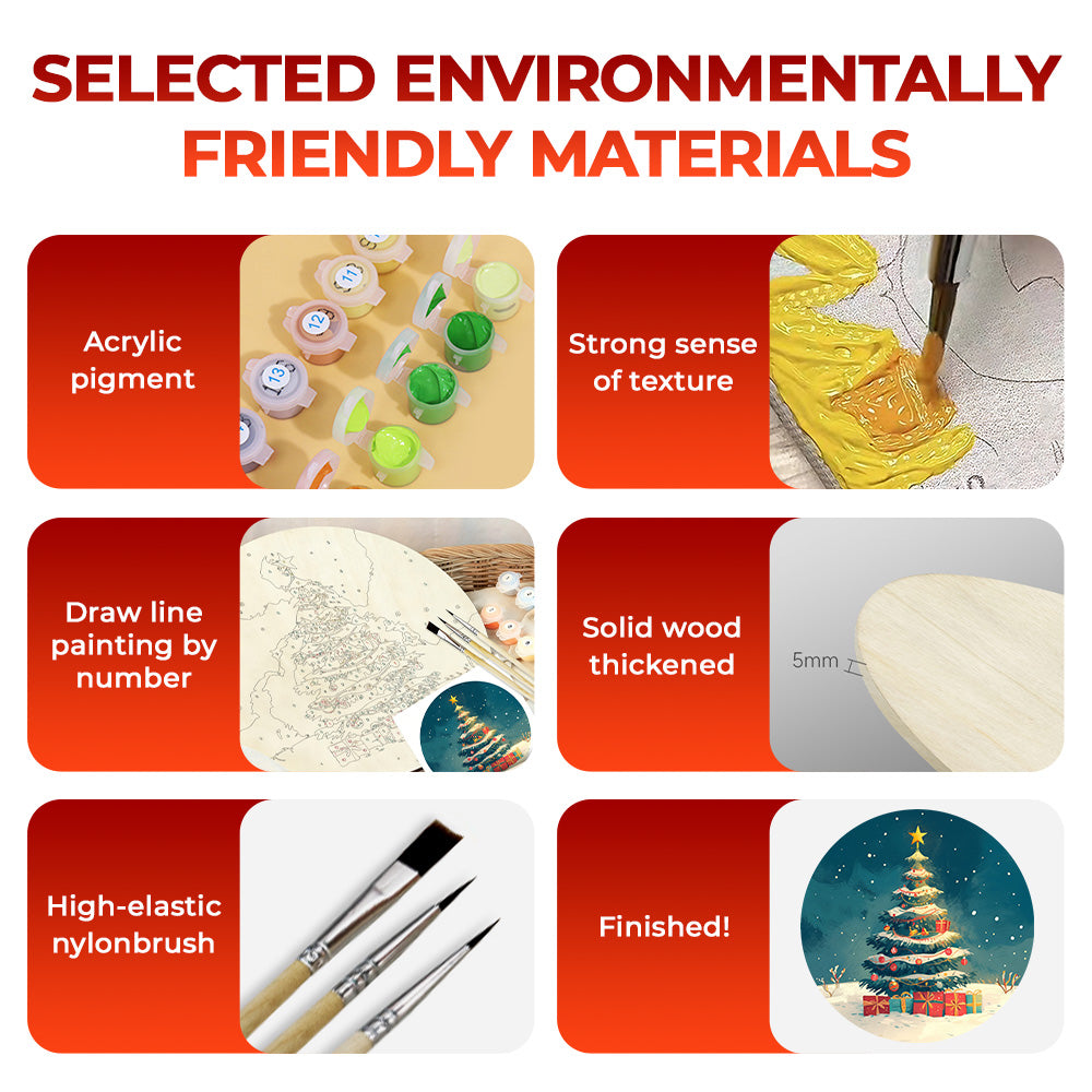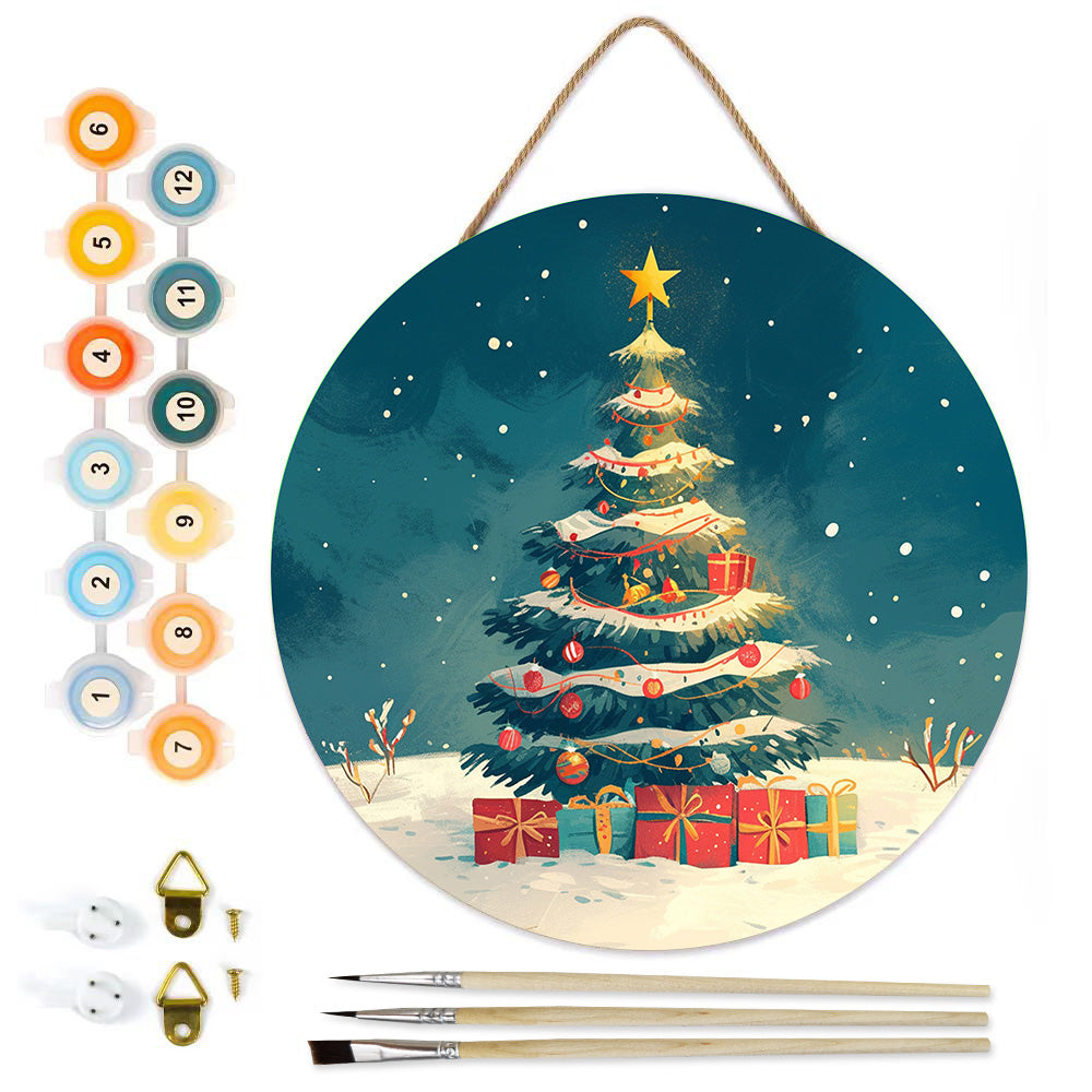 Paint by Numbers on Wood Slice - Christmas Tree and Gifts