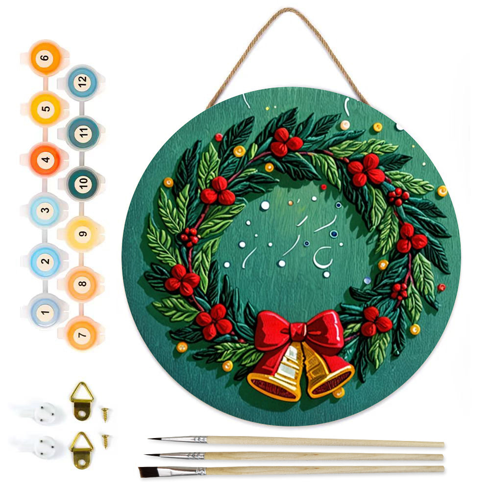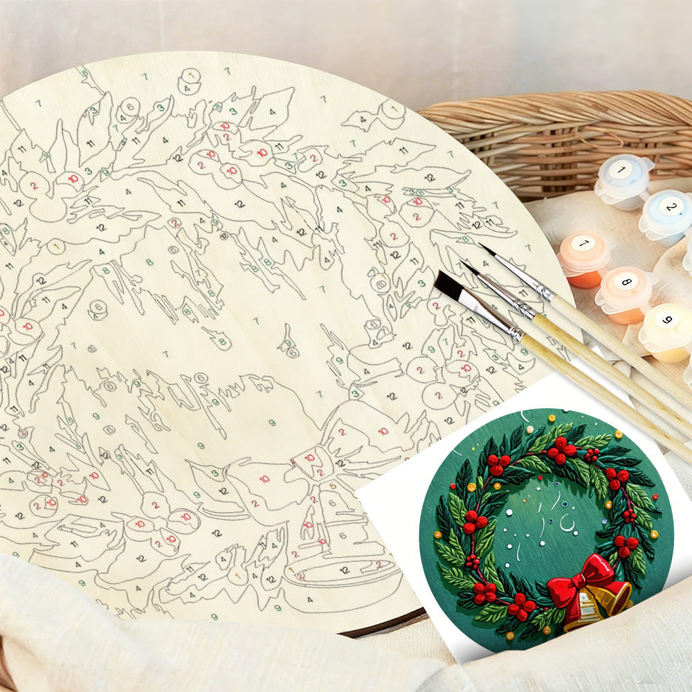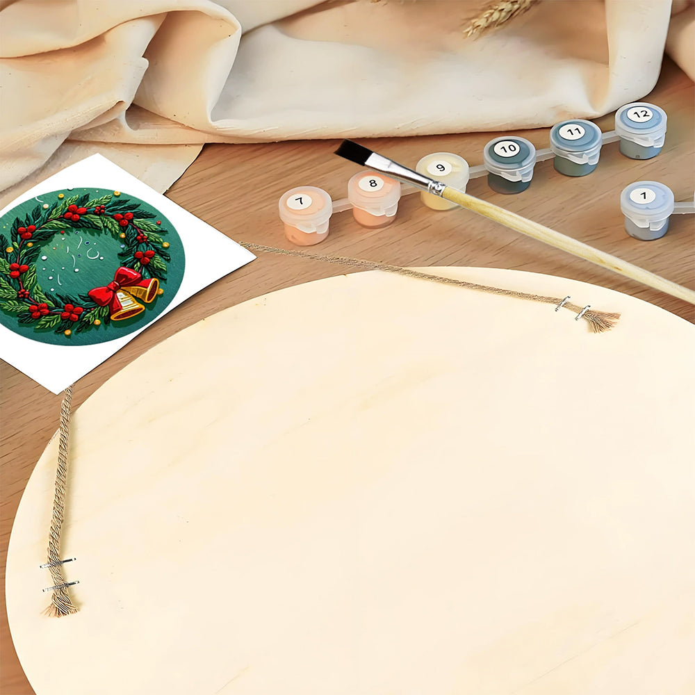 Paint by Numbers on Wood Slice - Christmas Wreath with Bells
