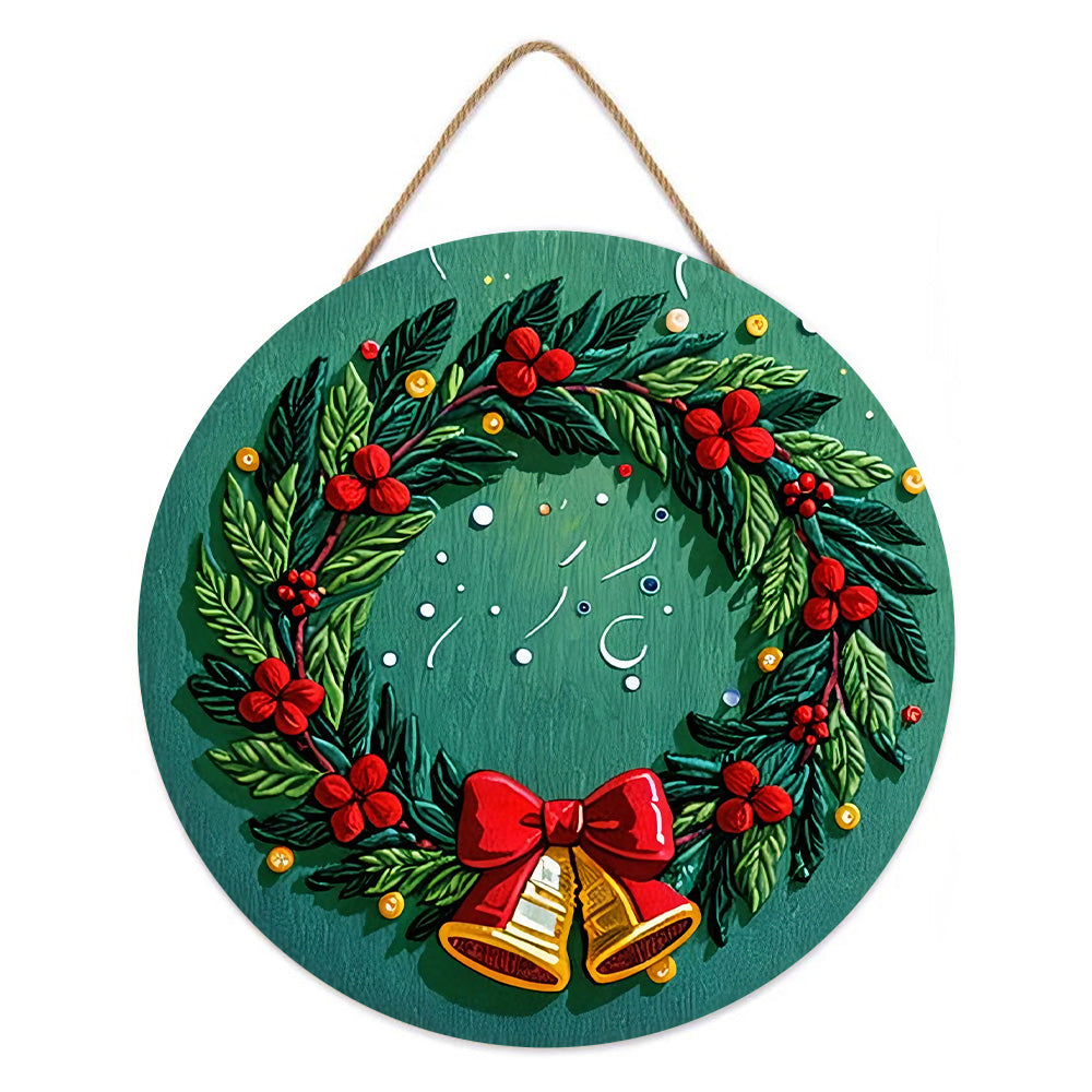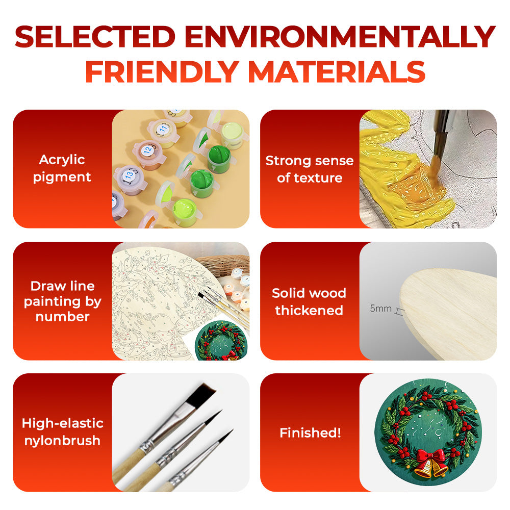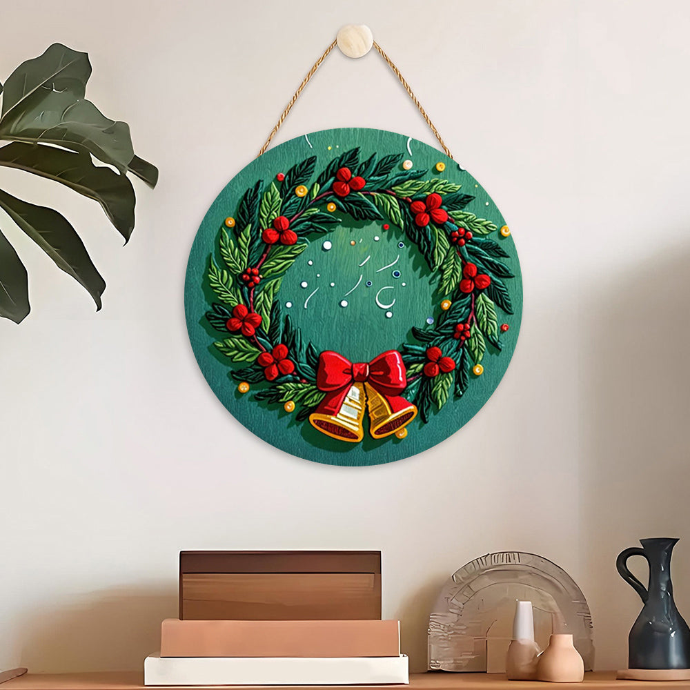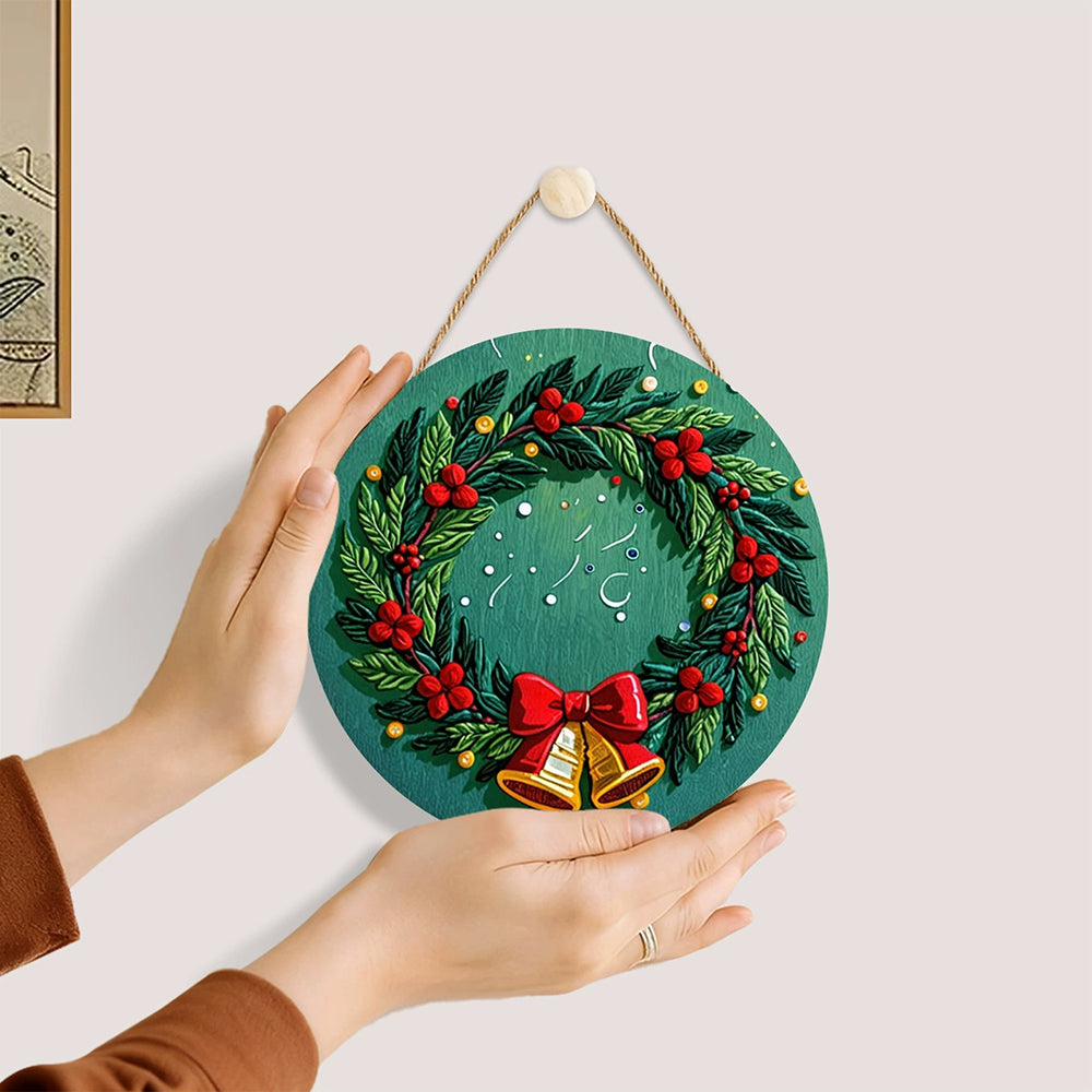 Paint by Numbers on Wood Slice - Christmas Wreath with Bells
