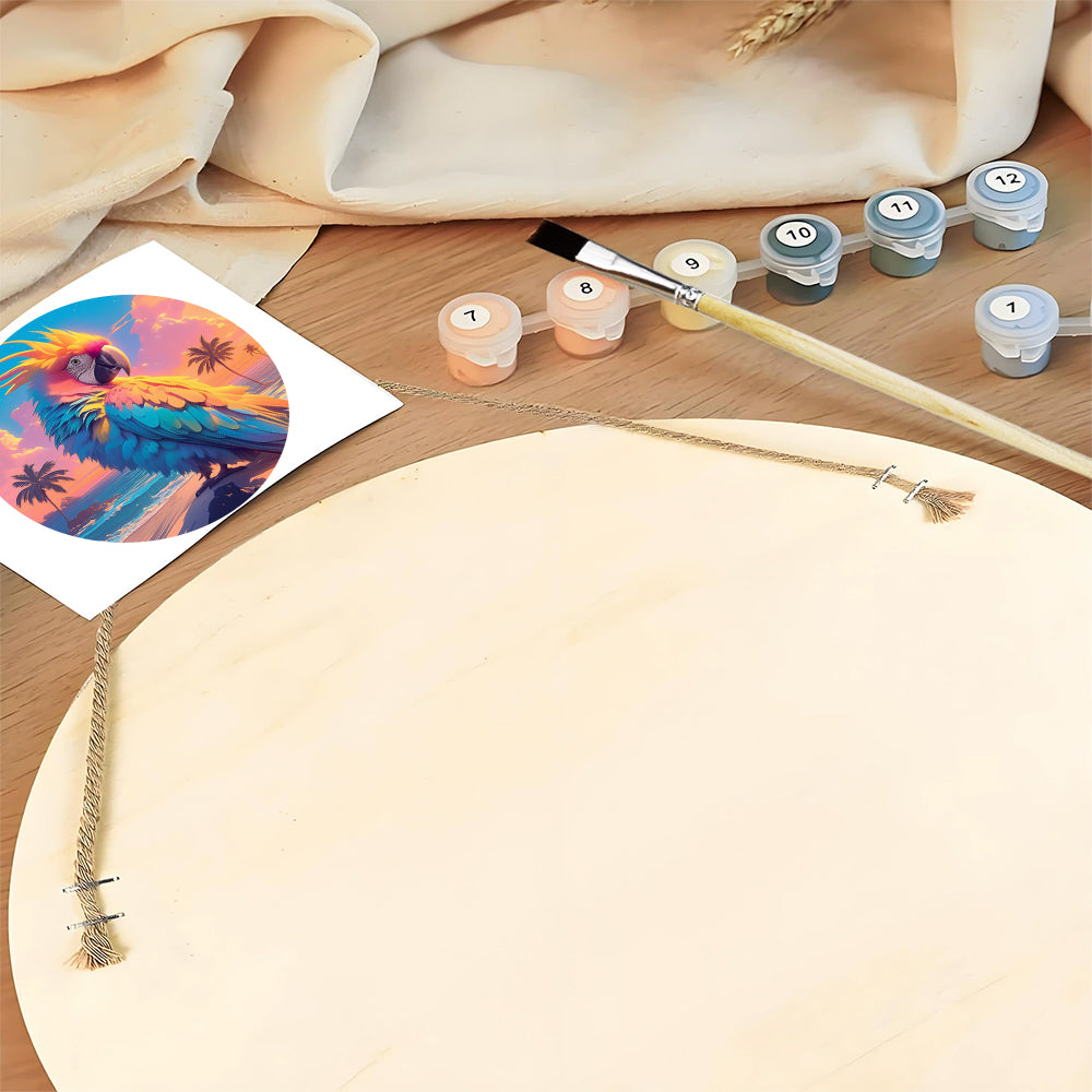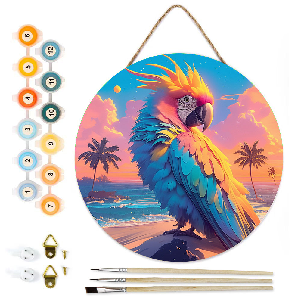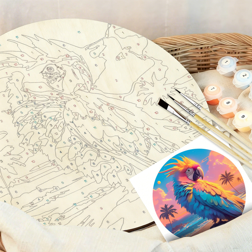Paint by Numbers on Wood Slice - Colorful Parrot and the Sea