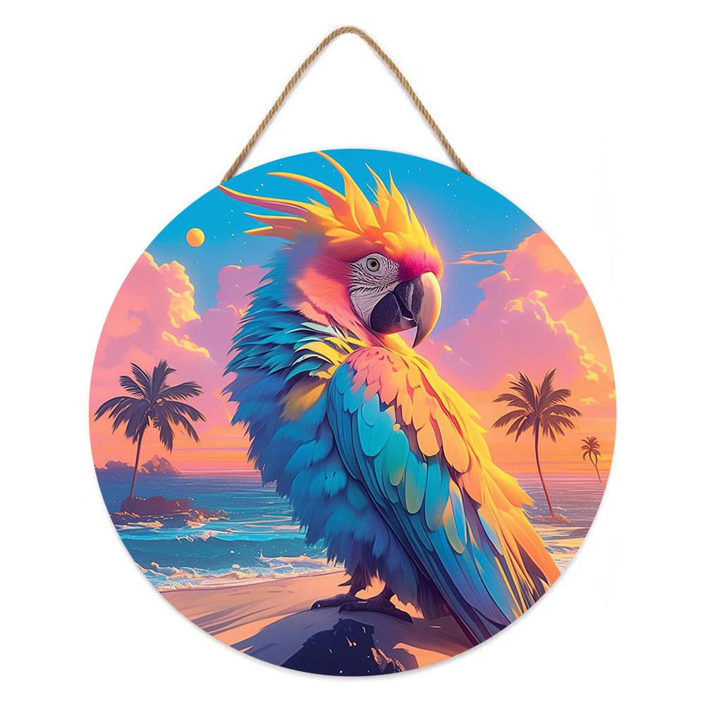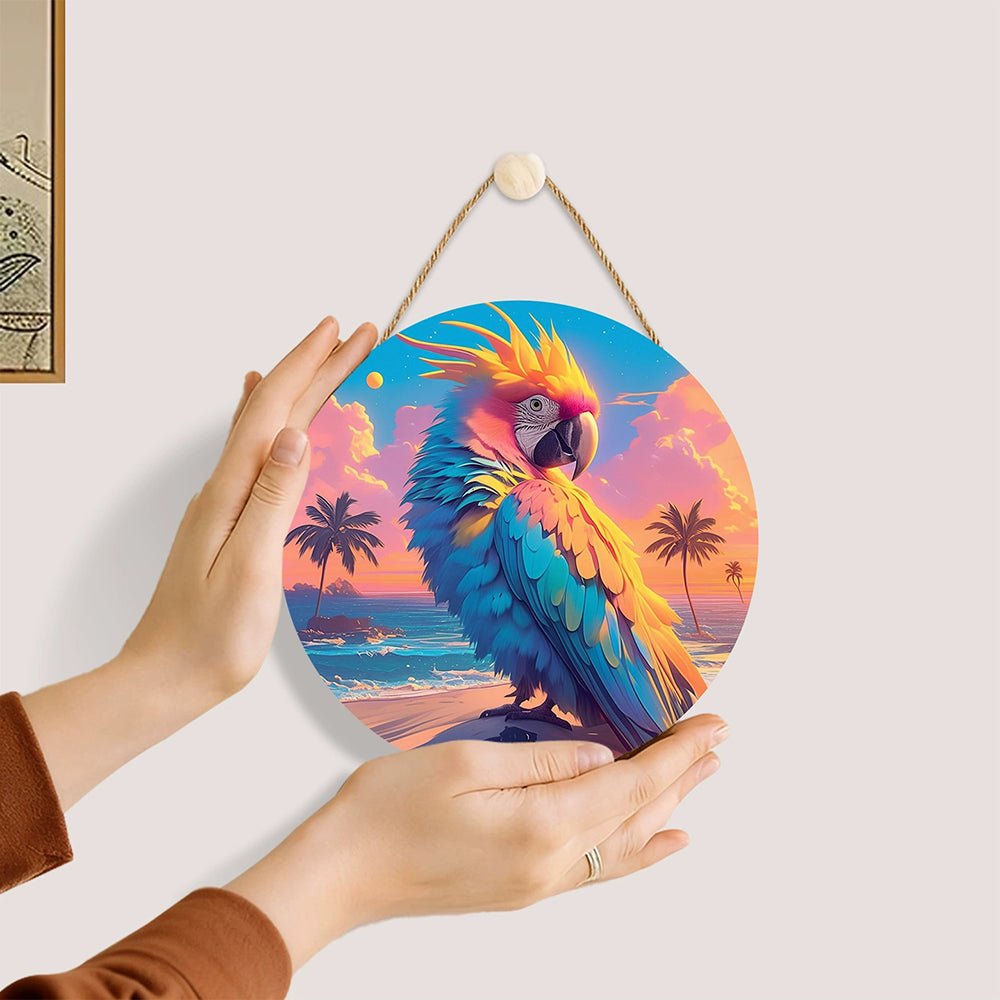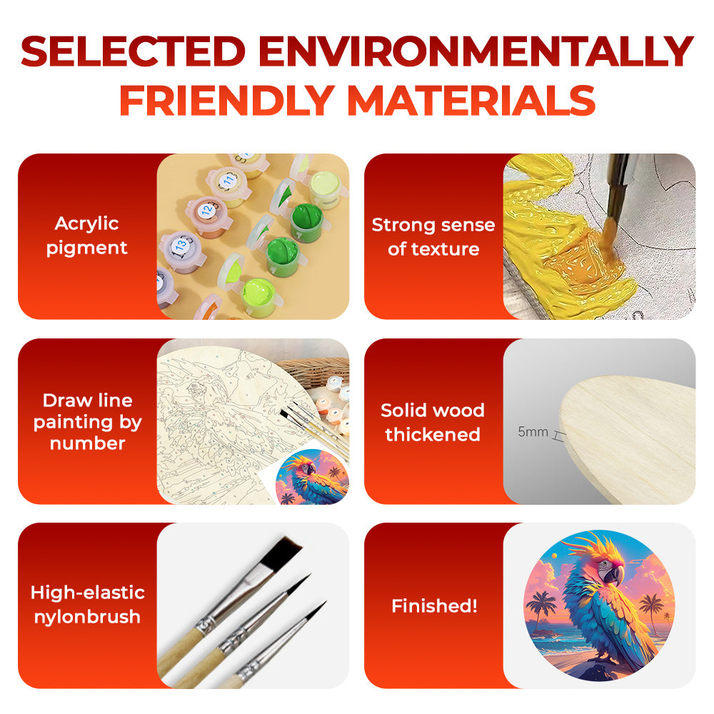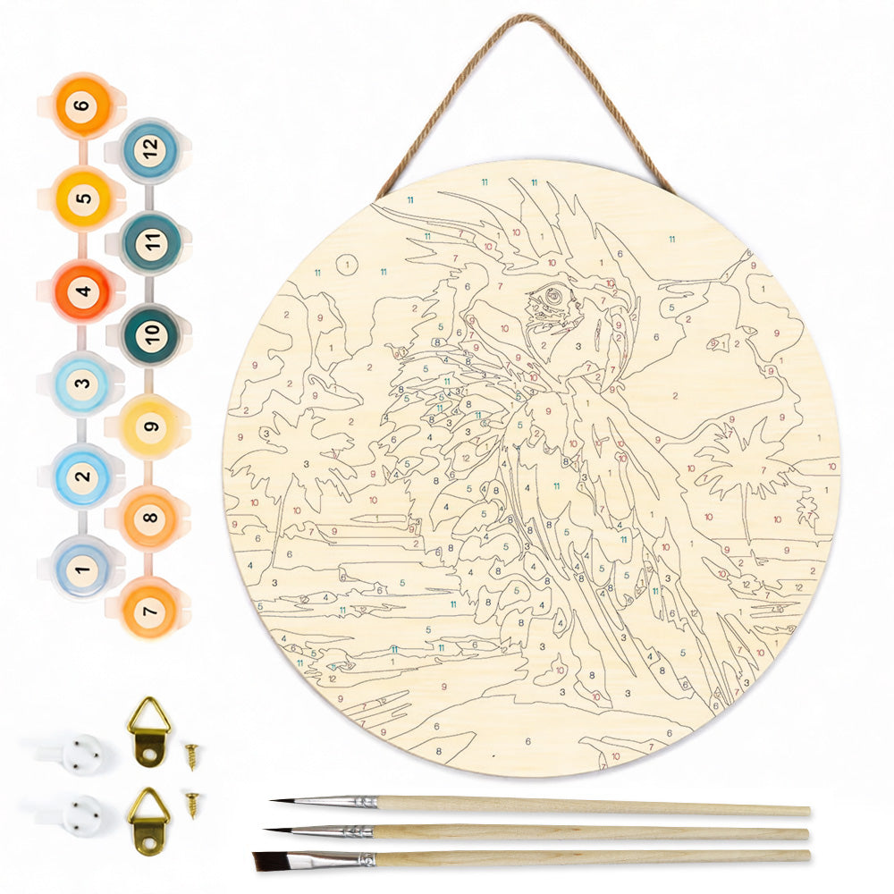 Paint by Numbers on Wood Slice - Colorful Parrot and the Sea