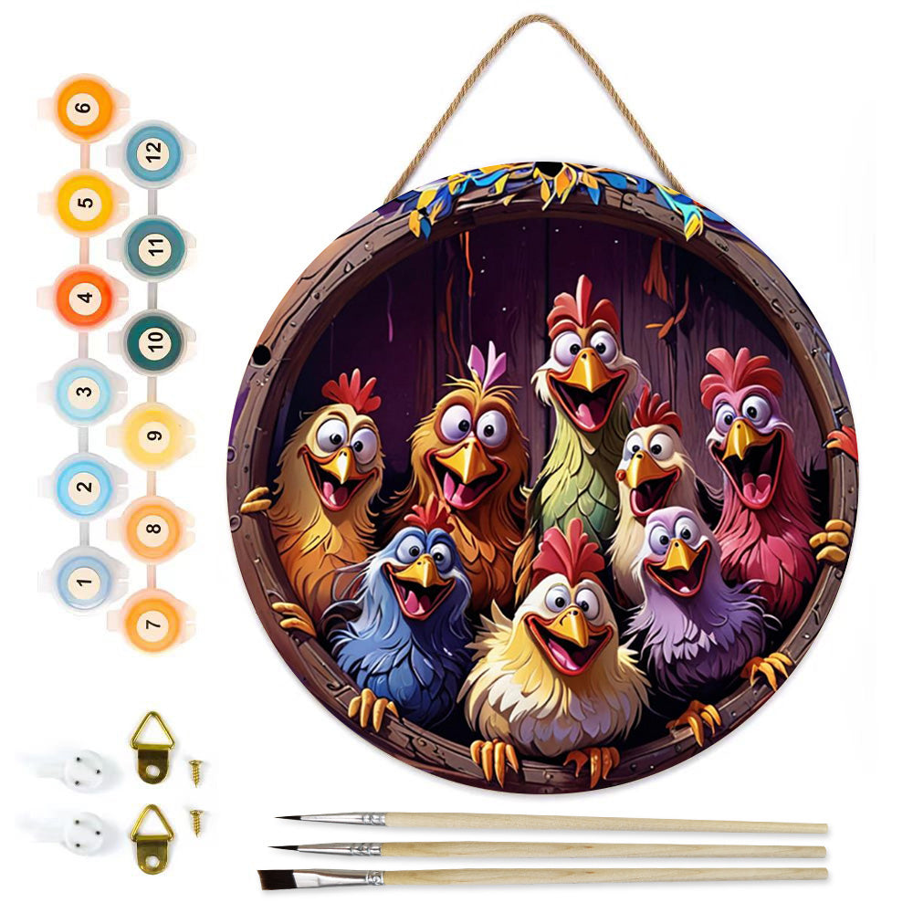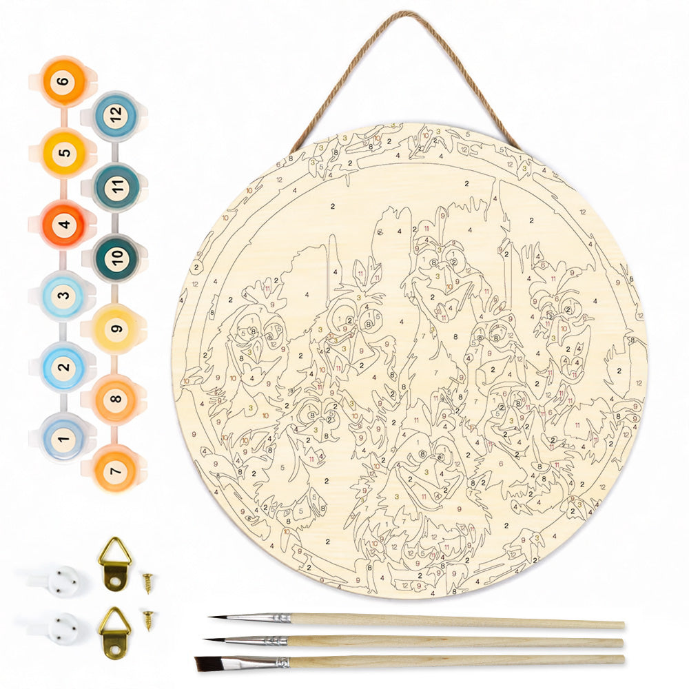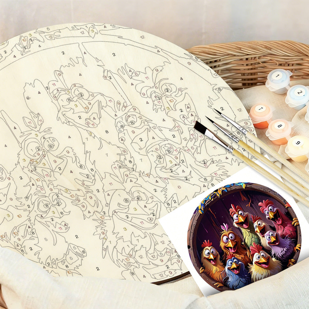 Paint by Numbers on Wood Slice - Colorful Roosters Singing Happily