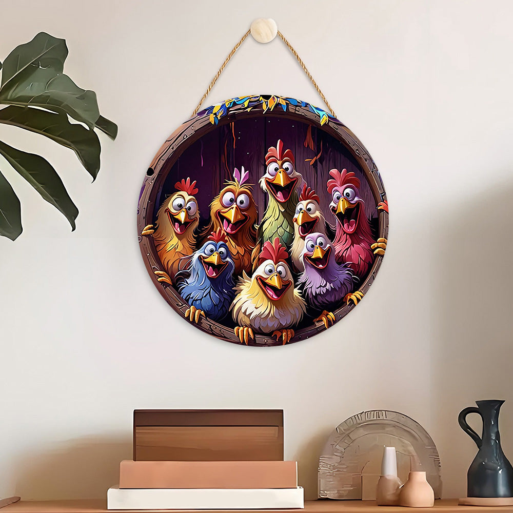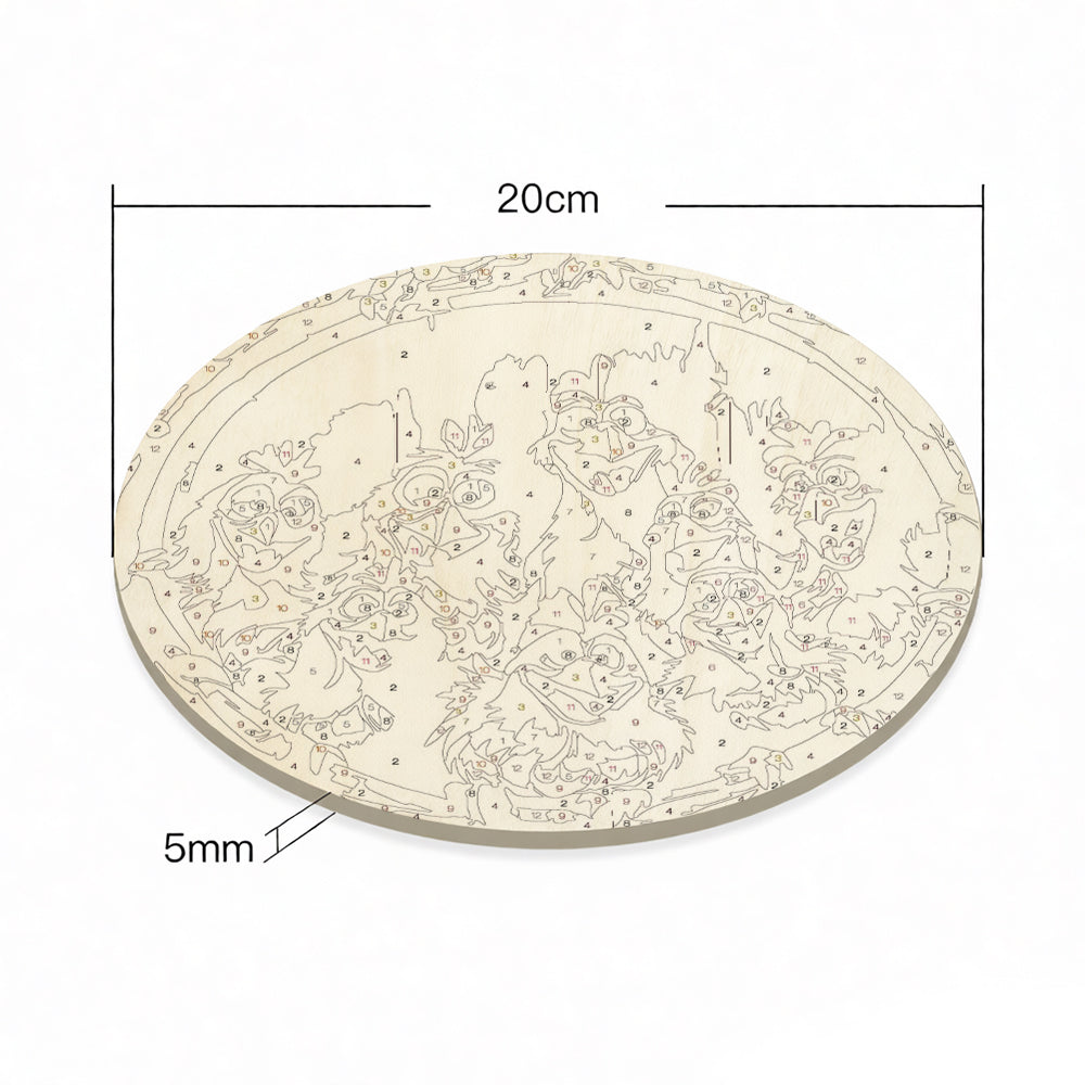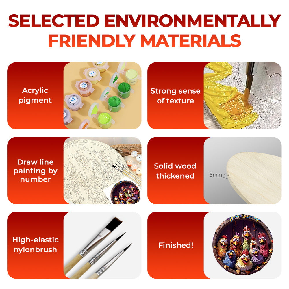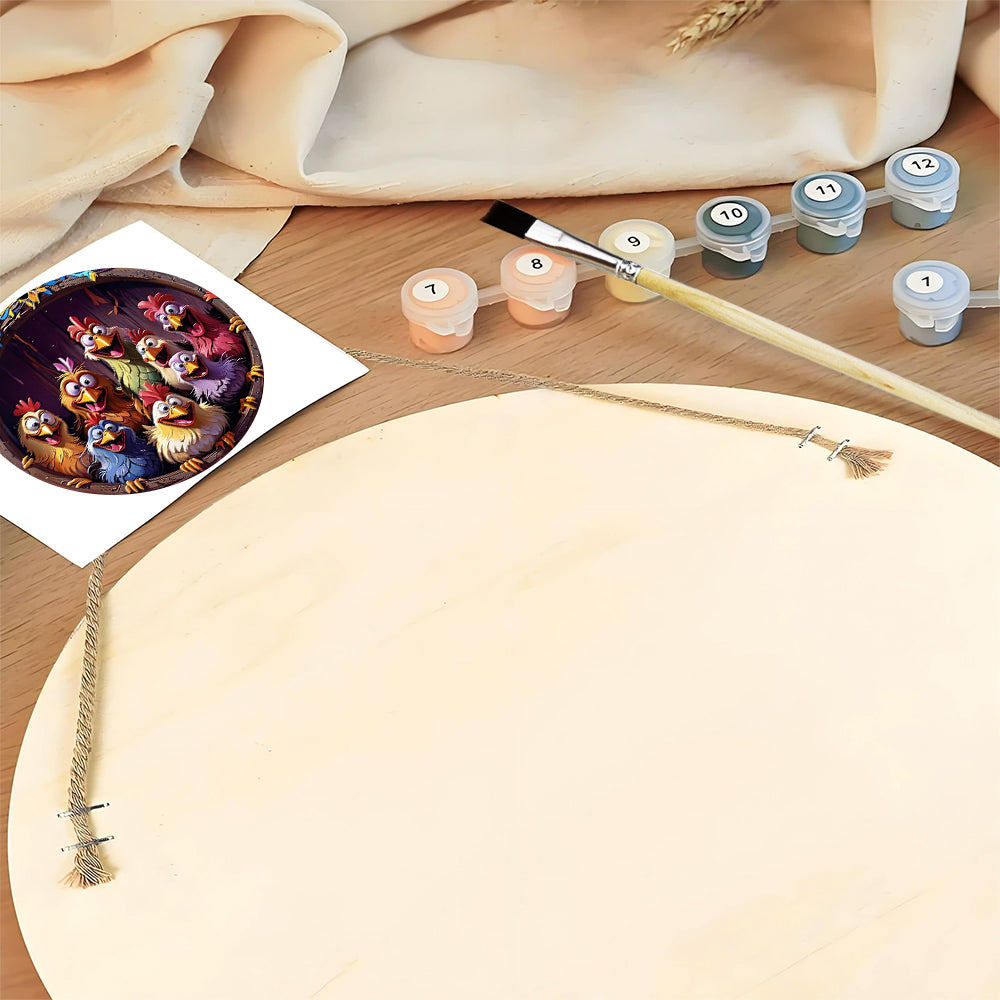 Paint by Numbers on Wood Slice - Colorful Roosters Singing Happily
