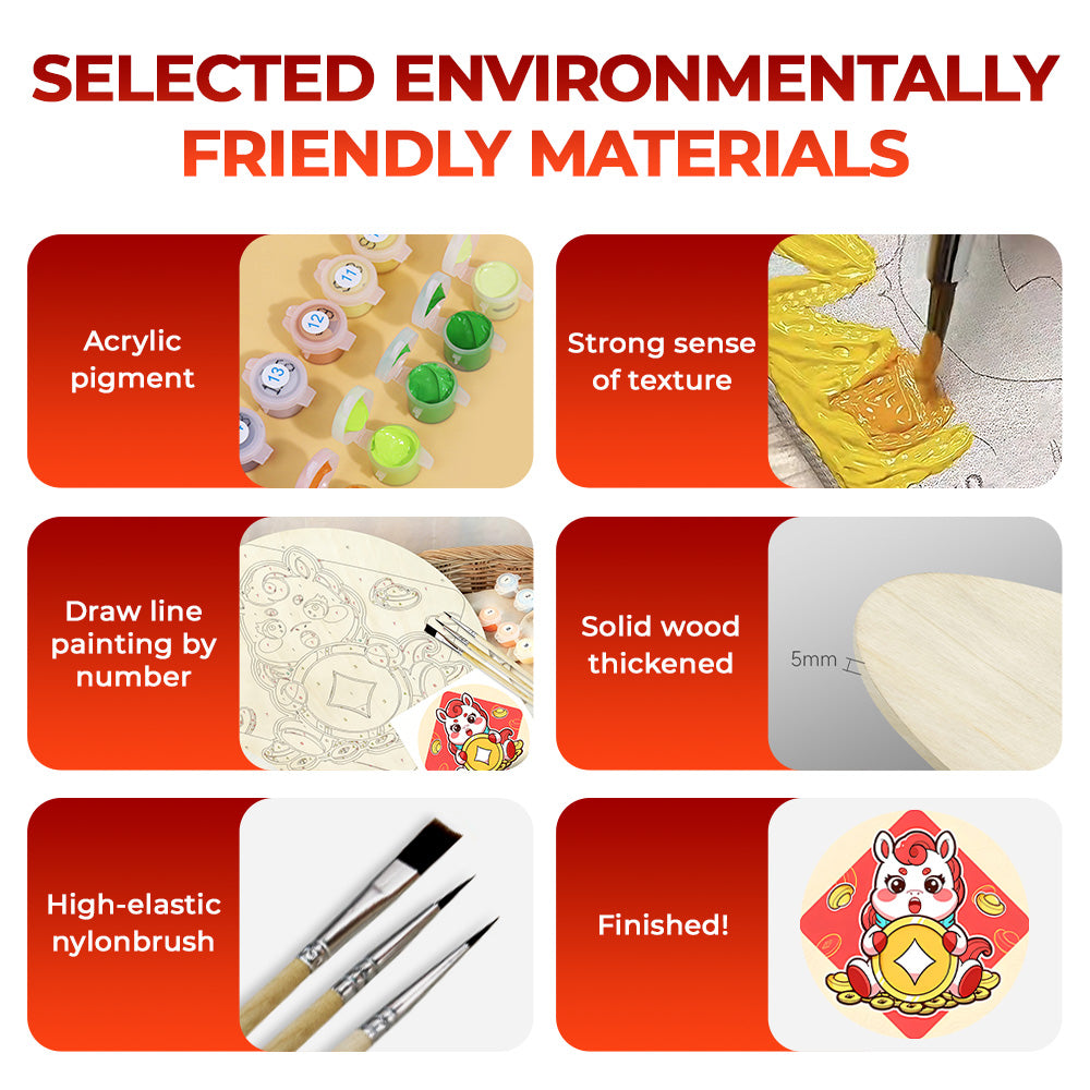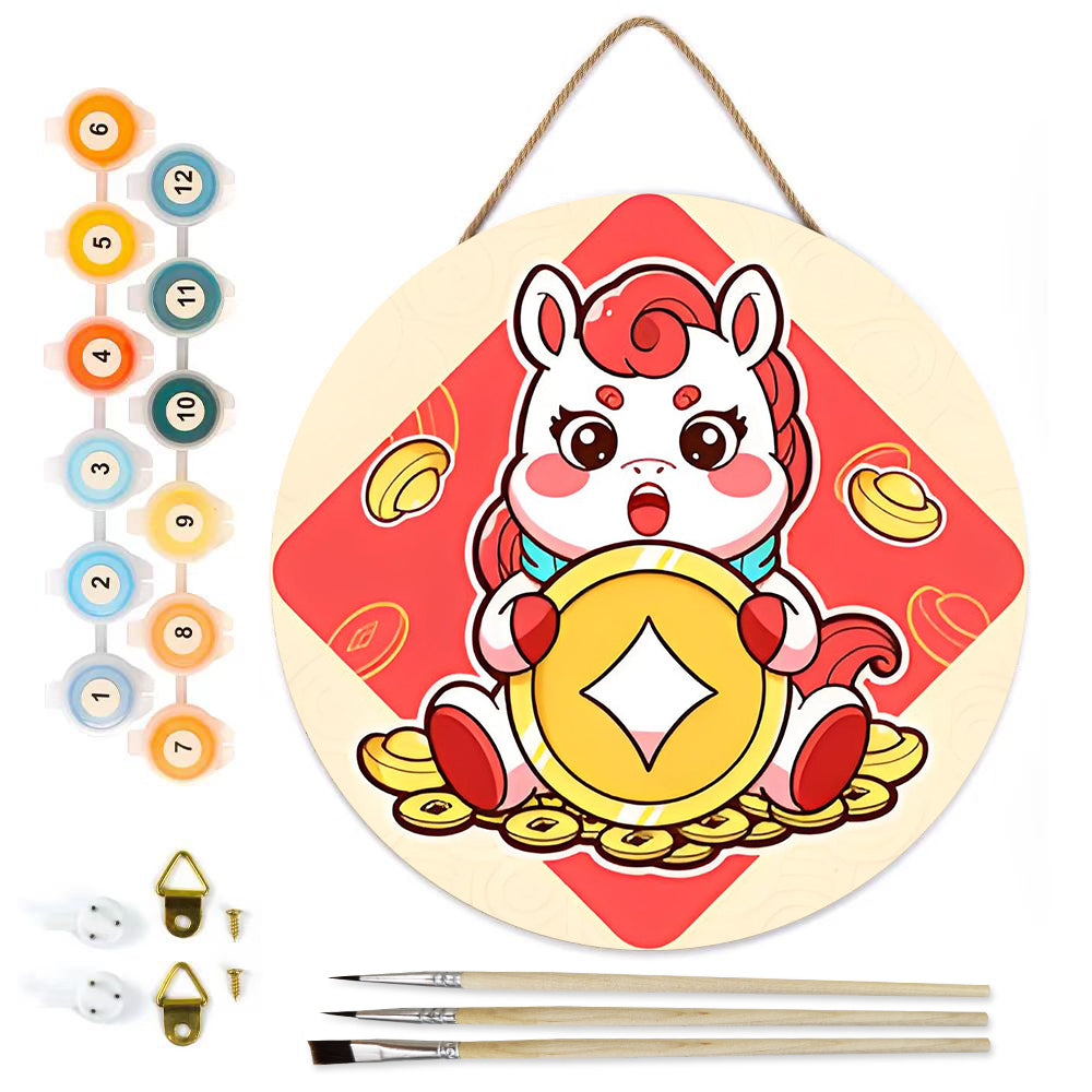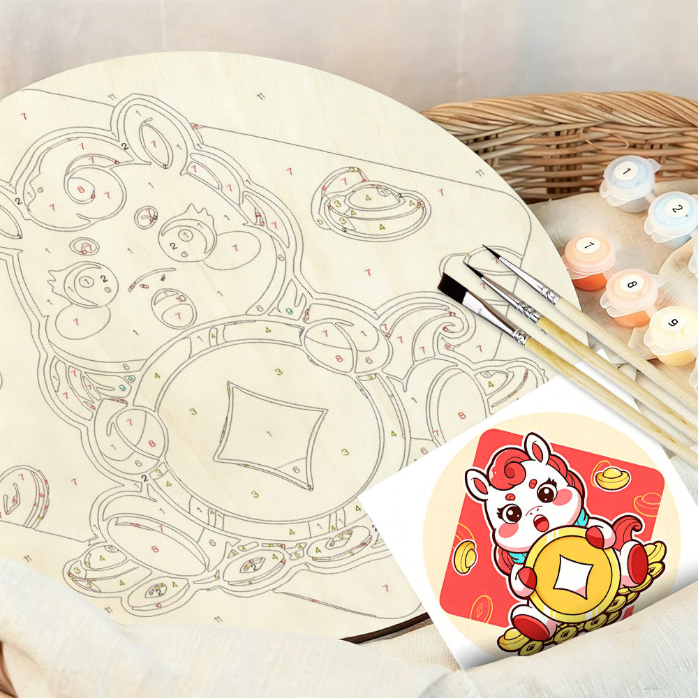 Paint by Numbers on Wood Slice - Copper Coins of the Year of the Horse