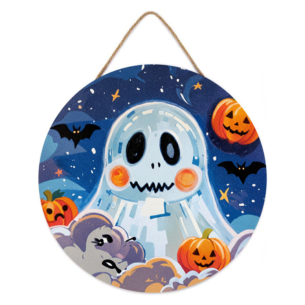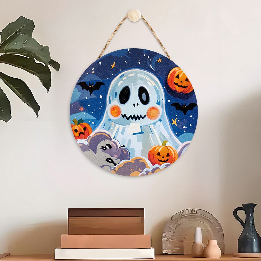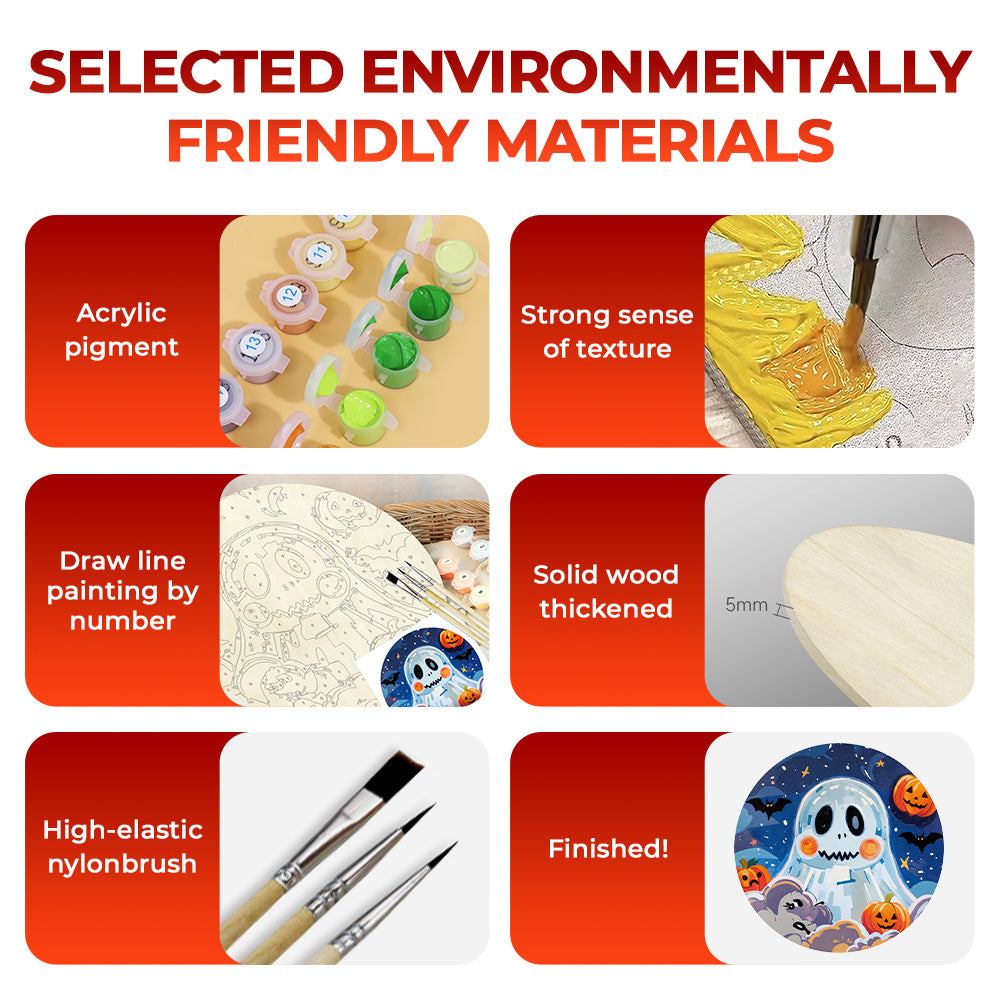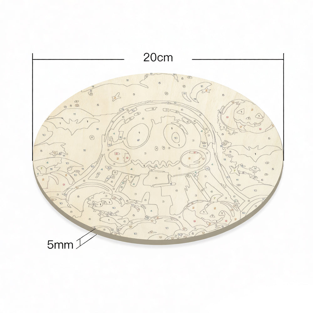 Paint by Numbers on Wood Slice - Cute Halloween Ghost and Pumpkin Lanterns