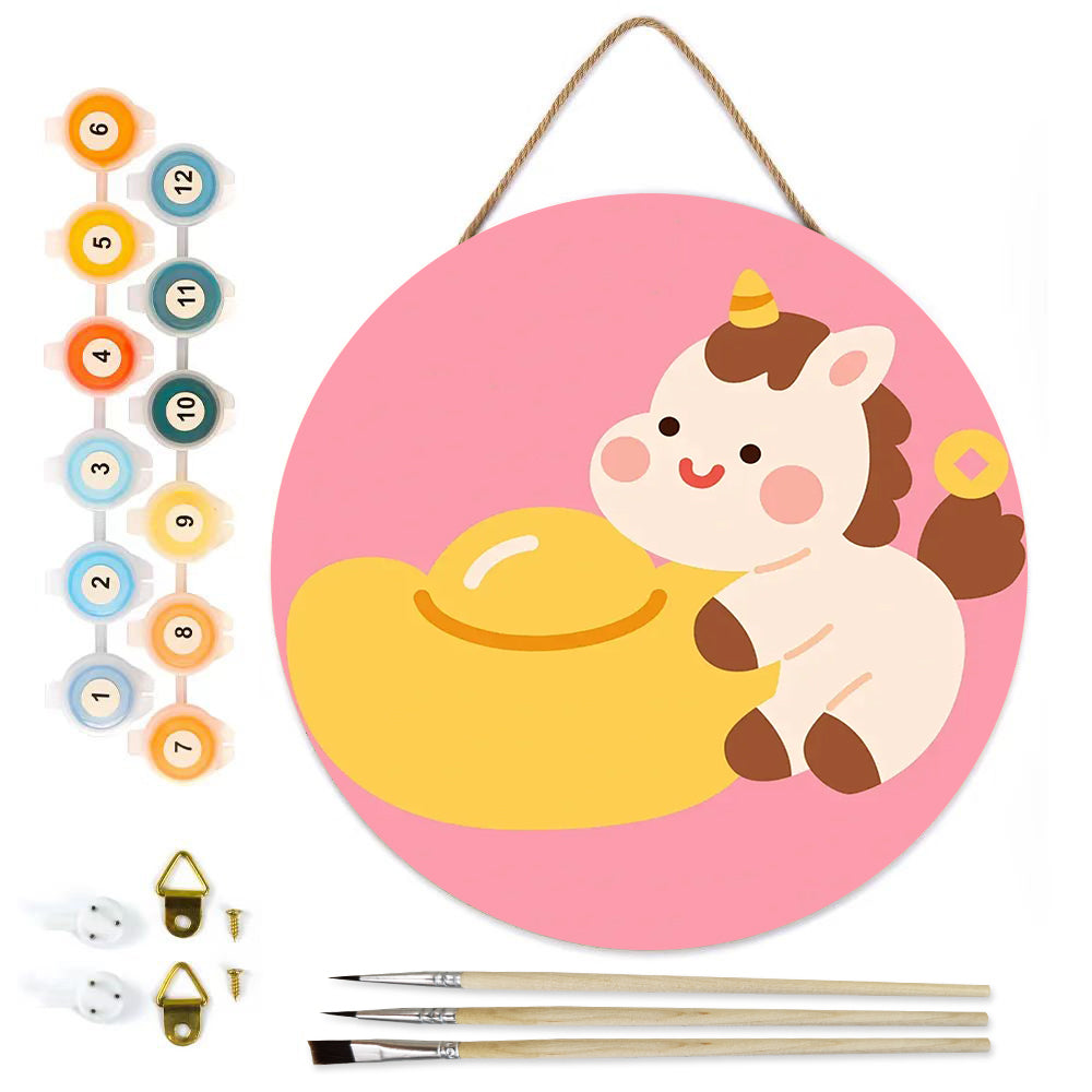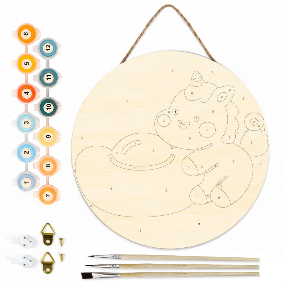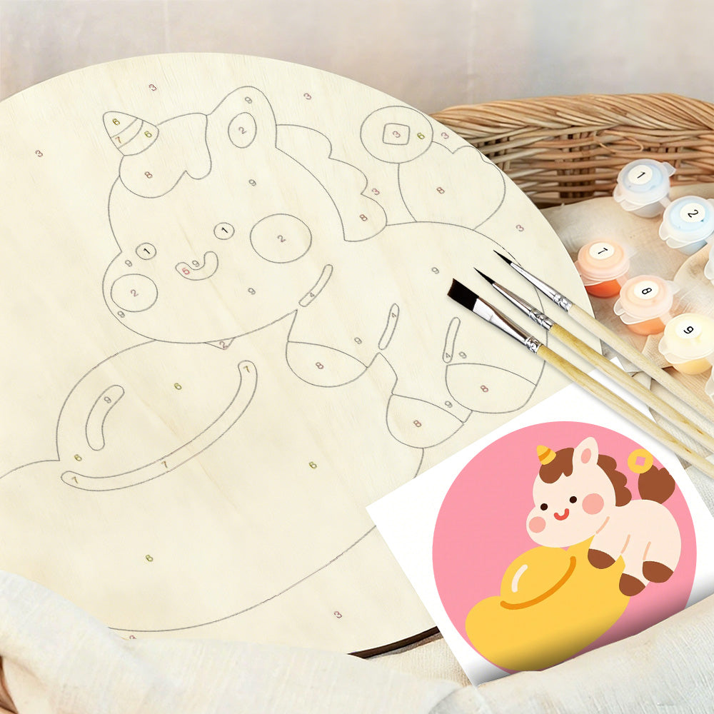 Paint by Numbers on Wood Slice - Cute Unicorn and Gold Ingot