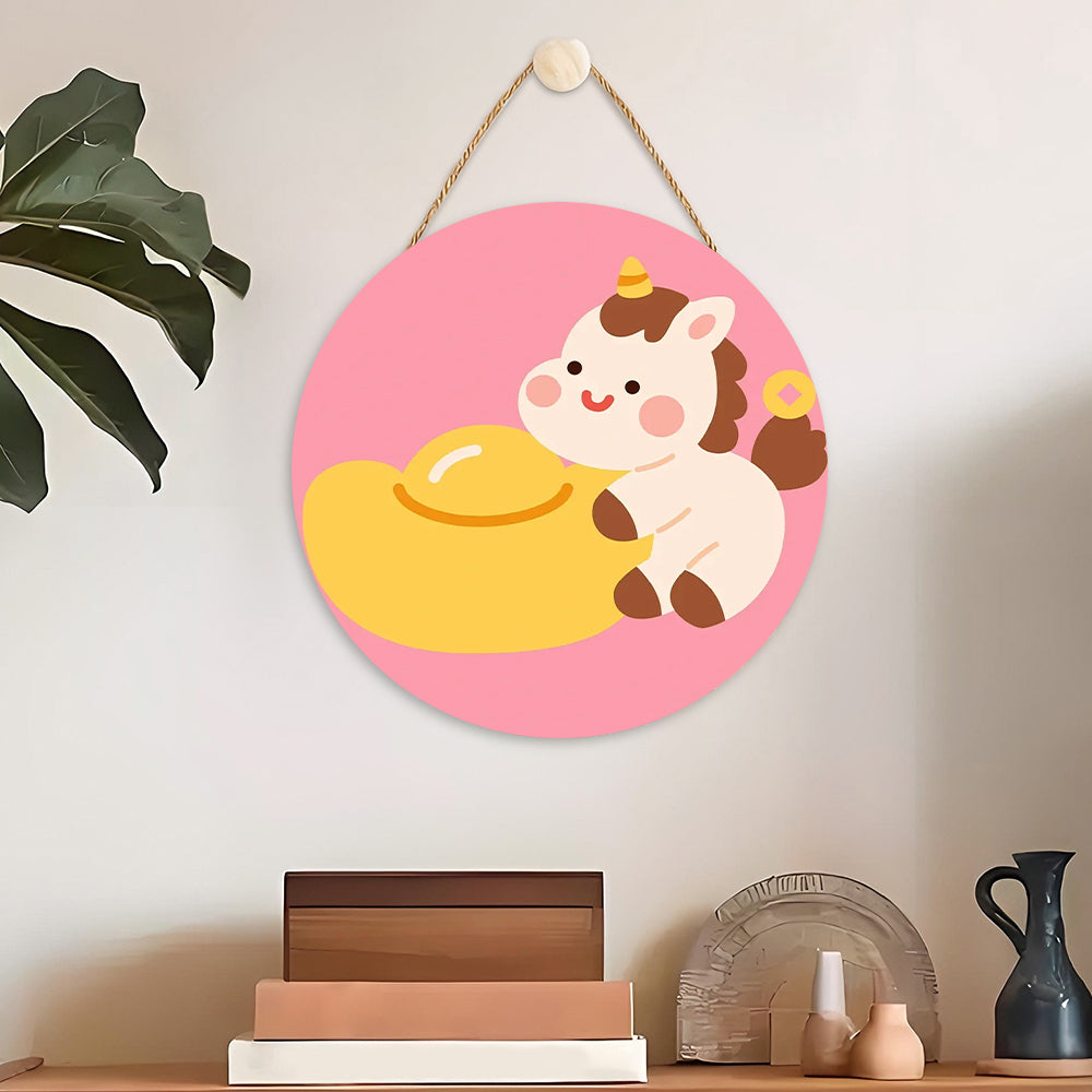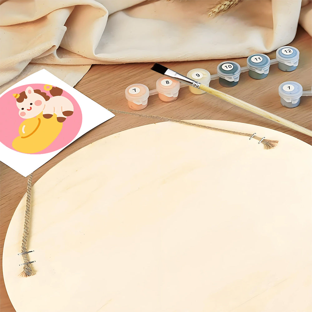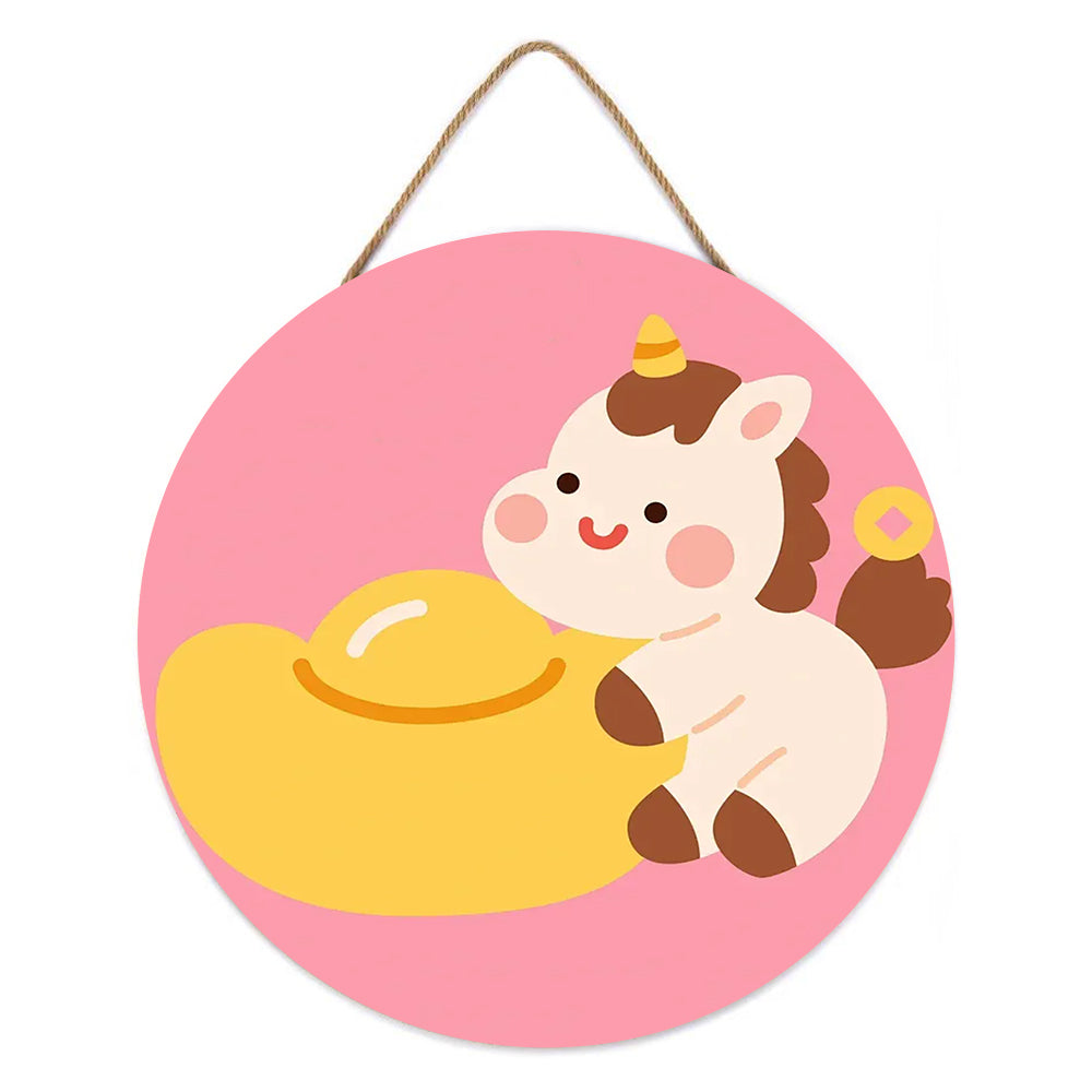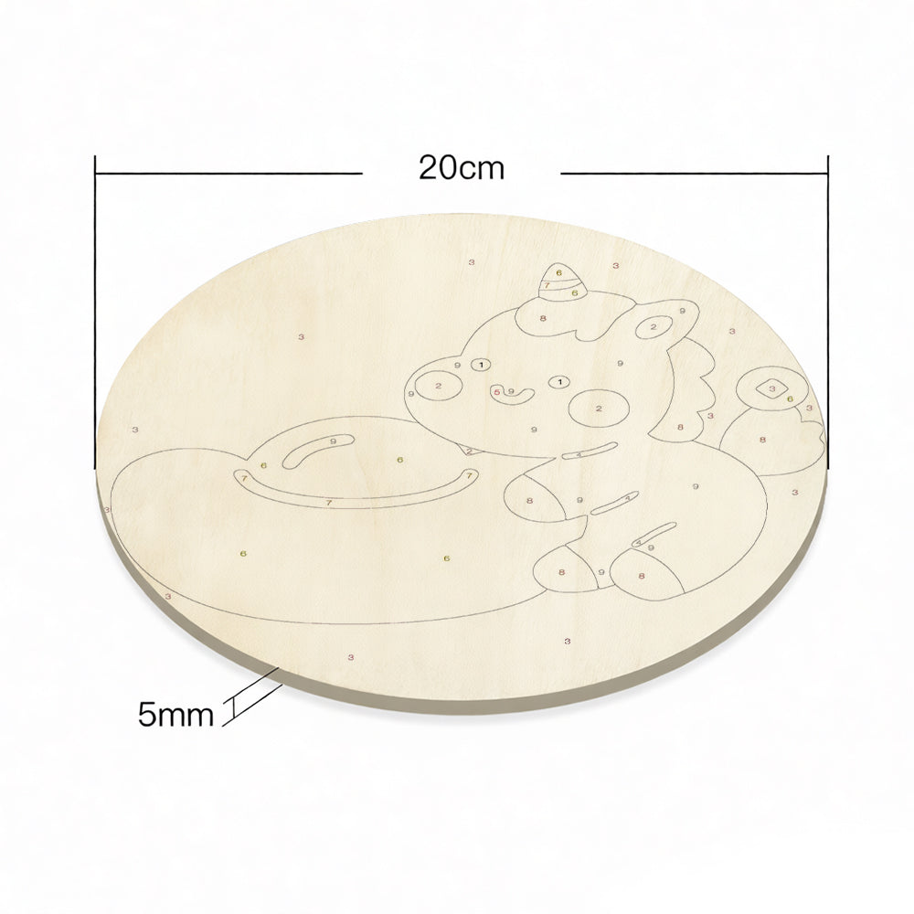 Paint by Numbers on Wood Slice - Cute Unicorn and Gold Ingot