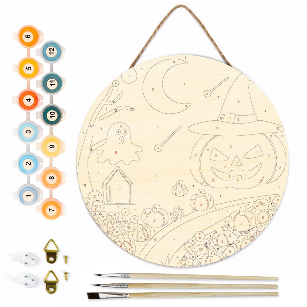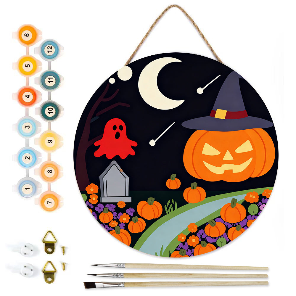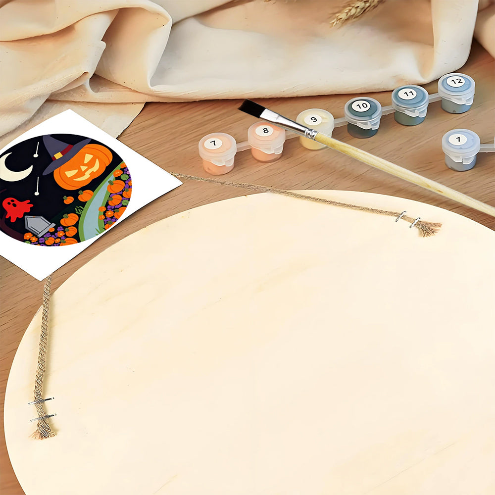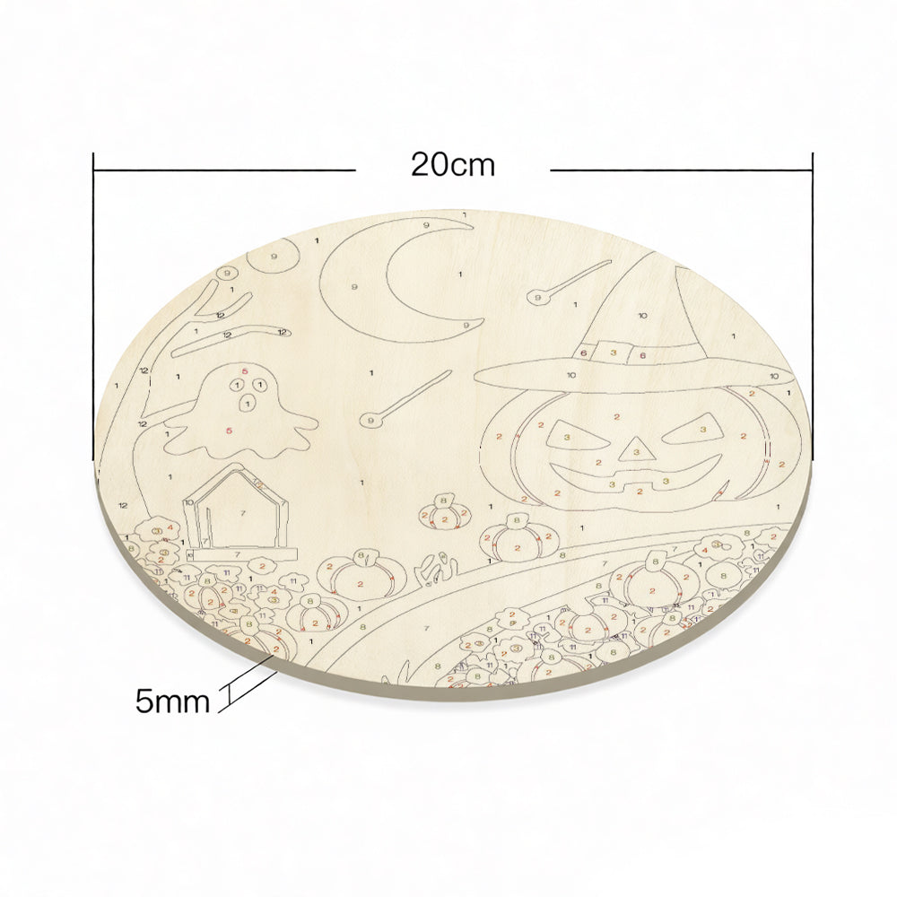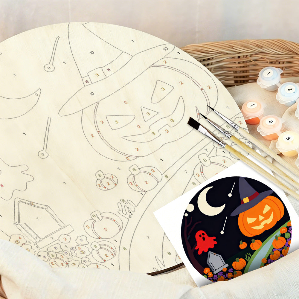 Paint by Numbers on Wood Slice - Evil Pumpkin Lantern in the Cemetery