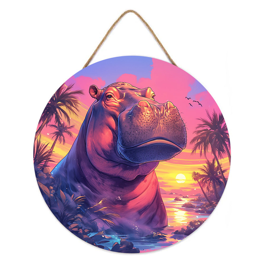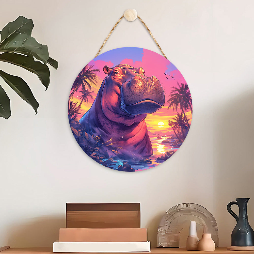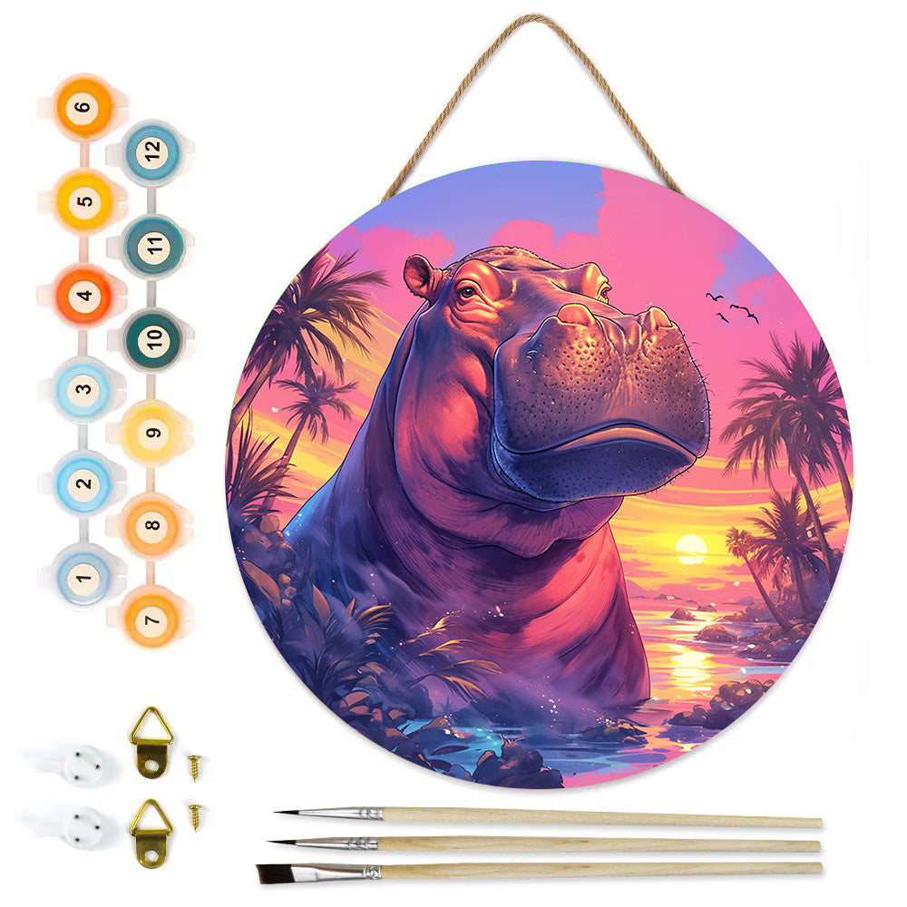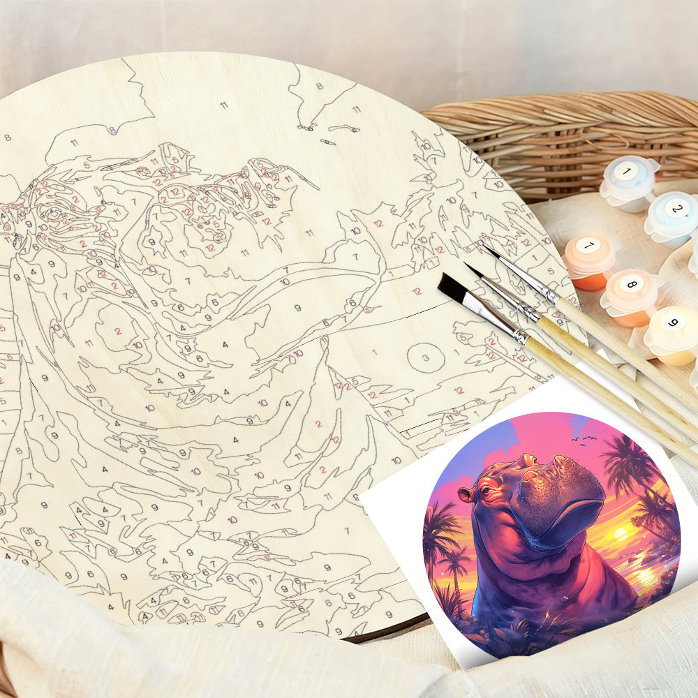 Paint by Numbers on Wood Slice - Hippo in the Sea at Sunset