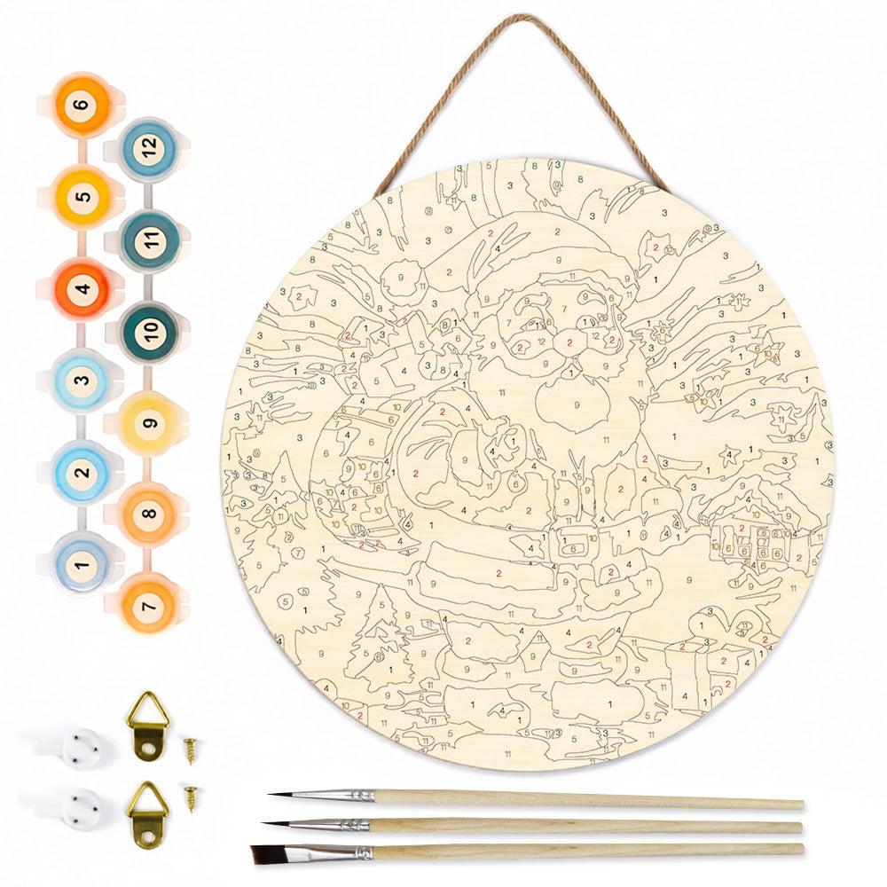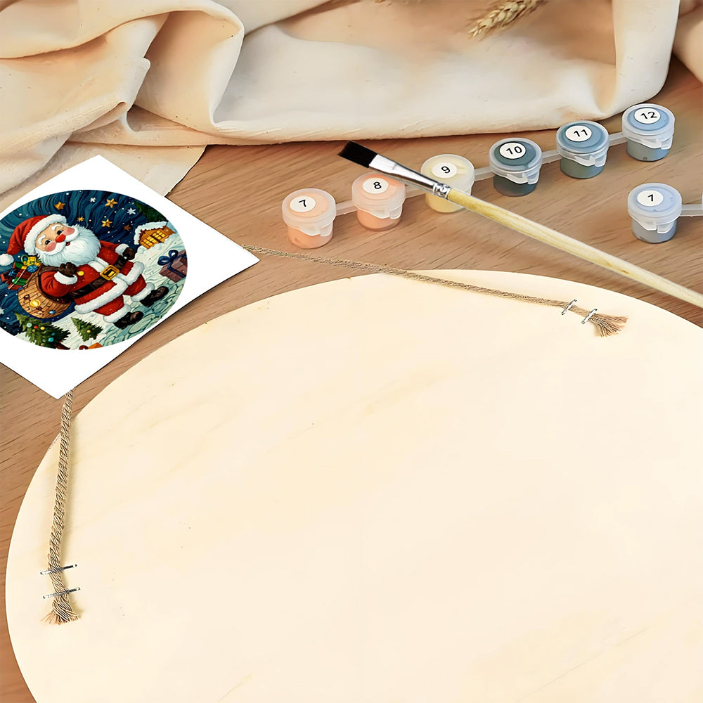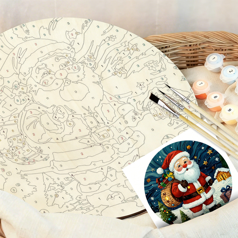 Paint by Numbers on Wood Slice - Santa Claus under the Stars