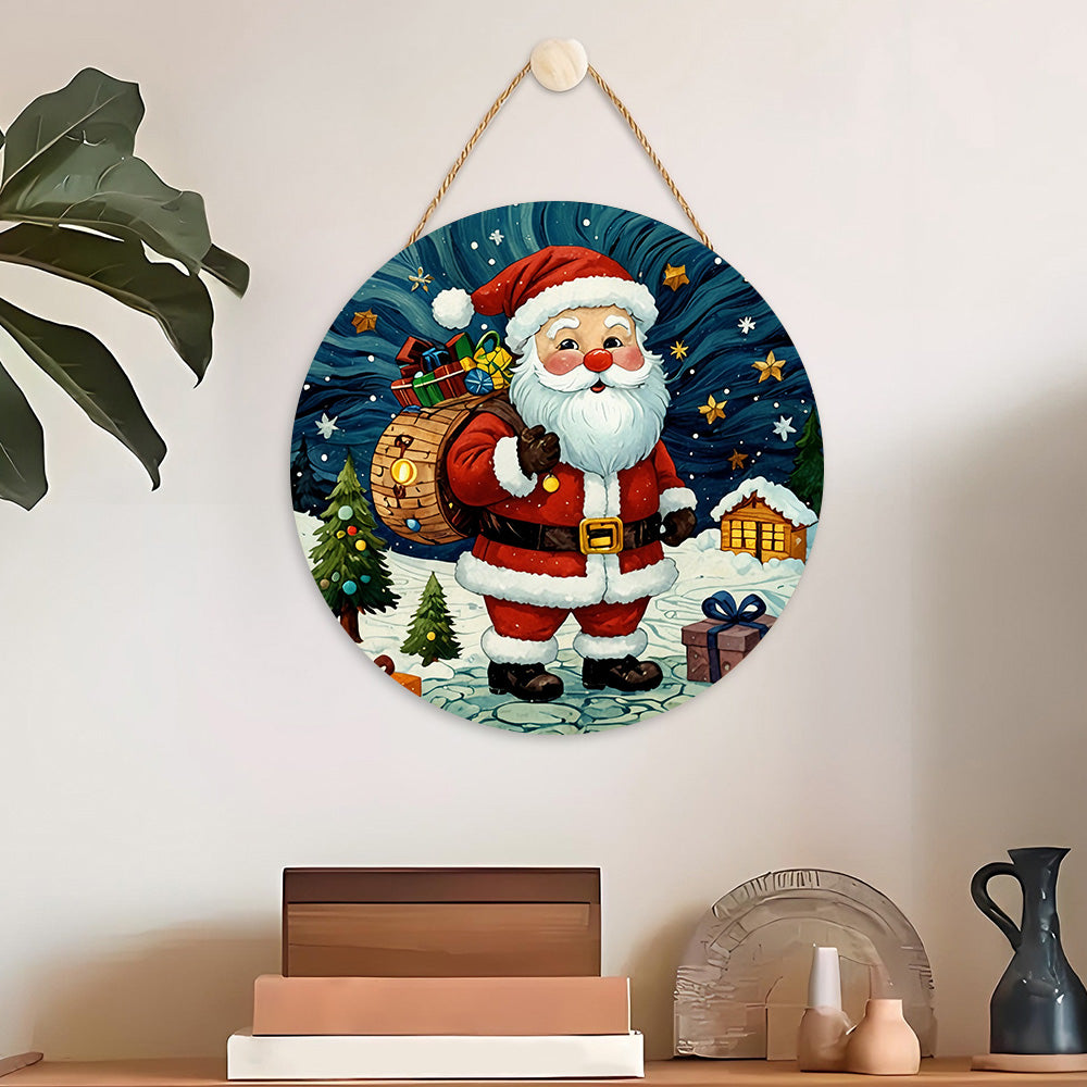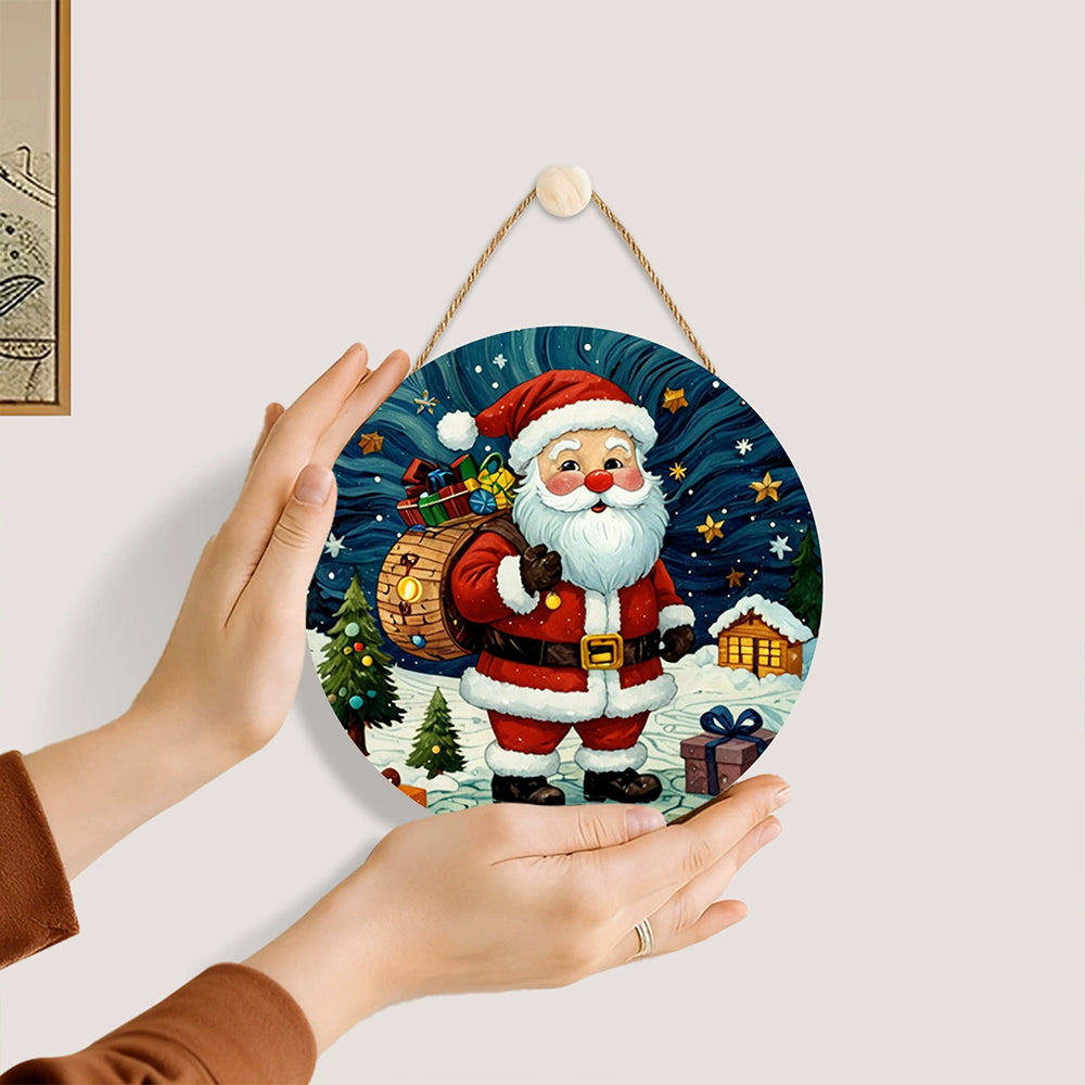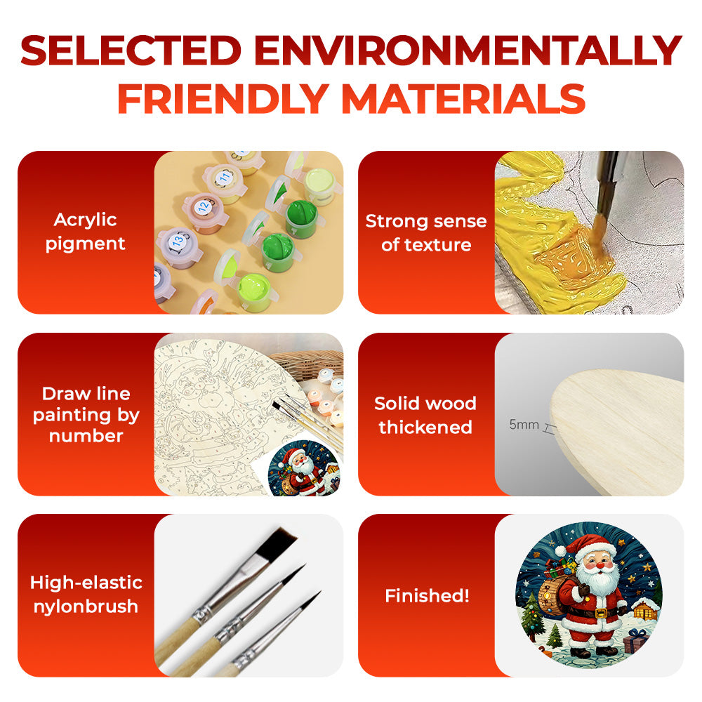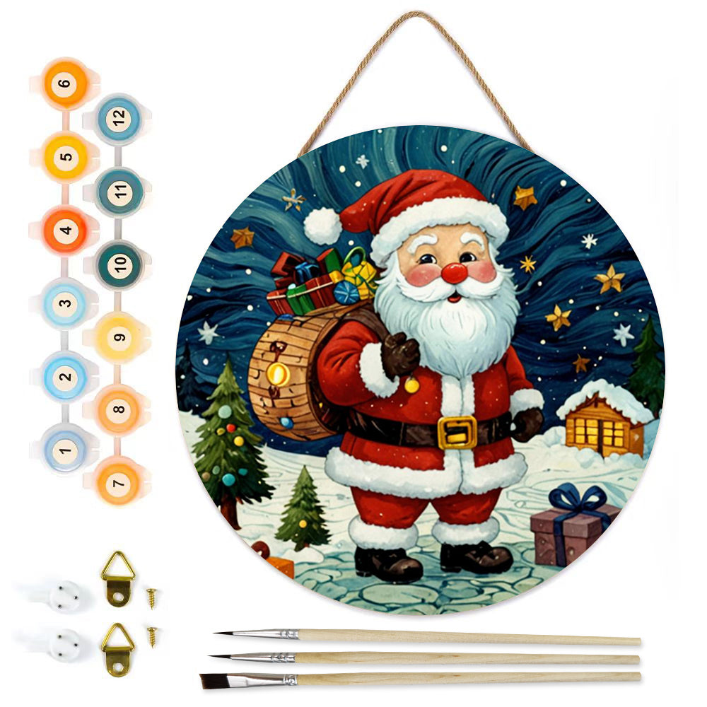 Paint by Numbers on Wood Slice - Santa Claus under the Stars
