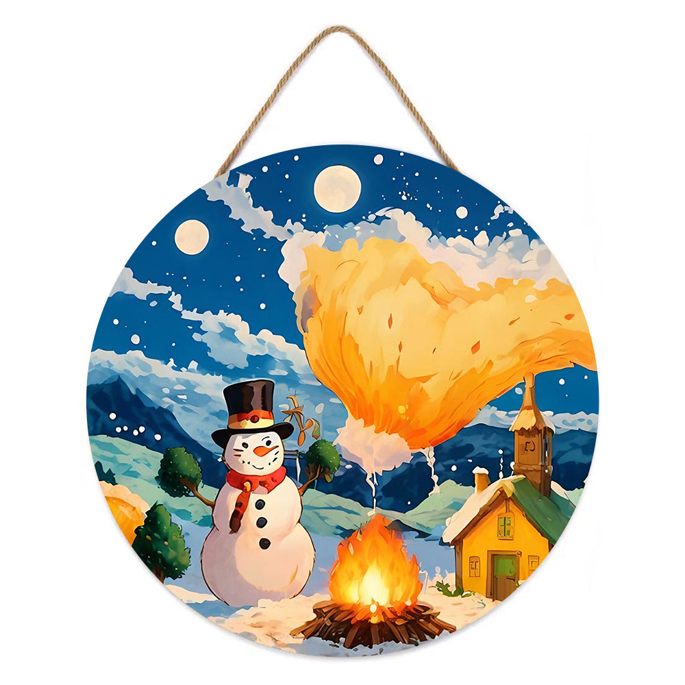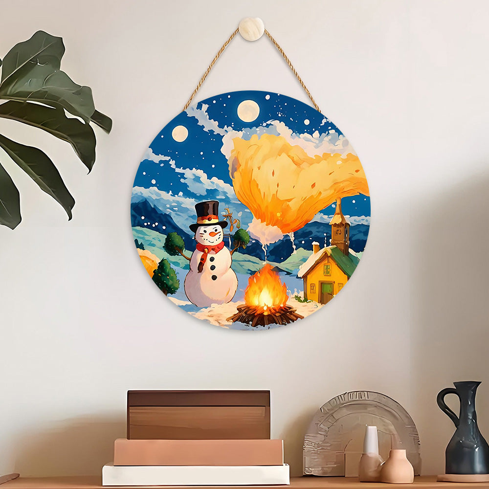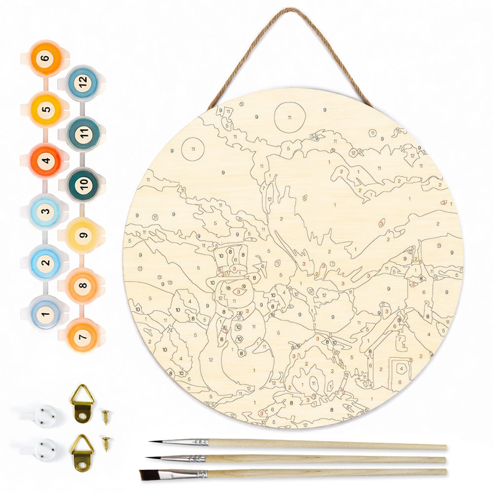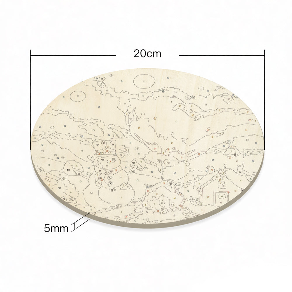 Paint by Numbers on Wood Slice - Snowman by the Campfire