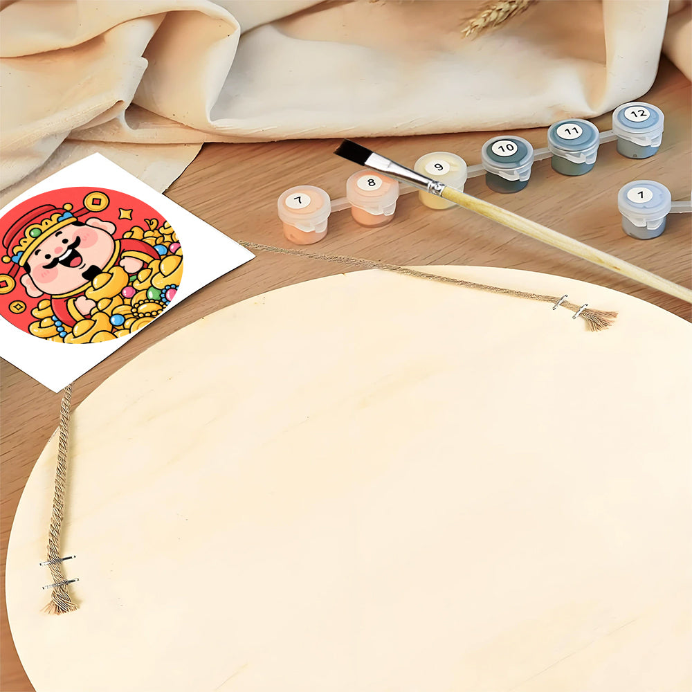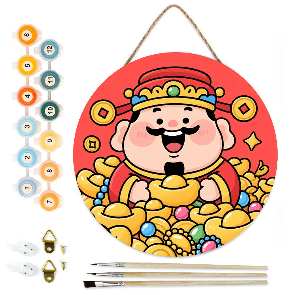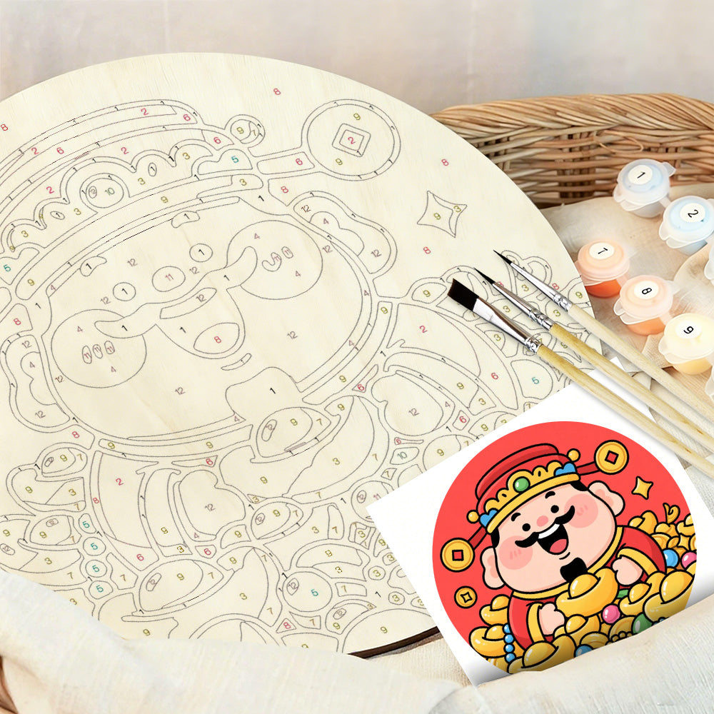 Paint by Numbers on Wood Slice - The God of Wealth Brings Many Gold Ingots