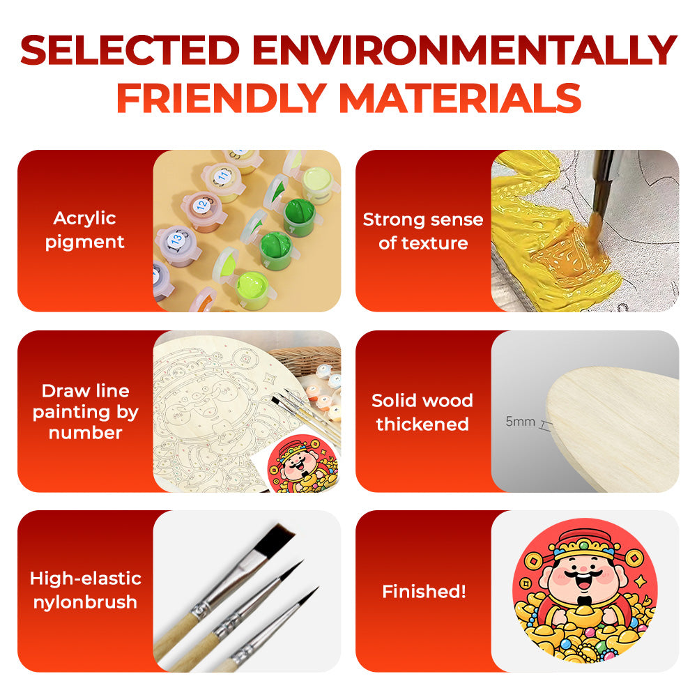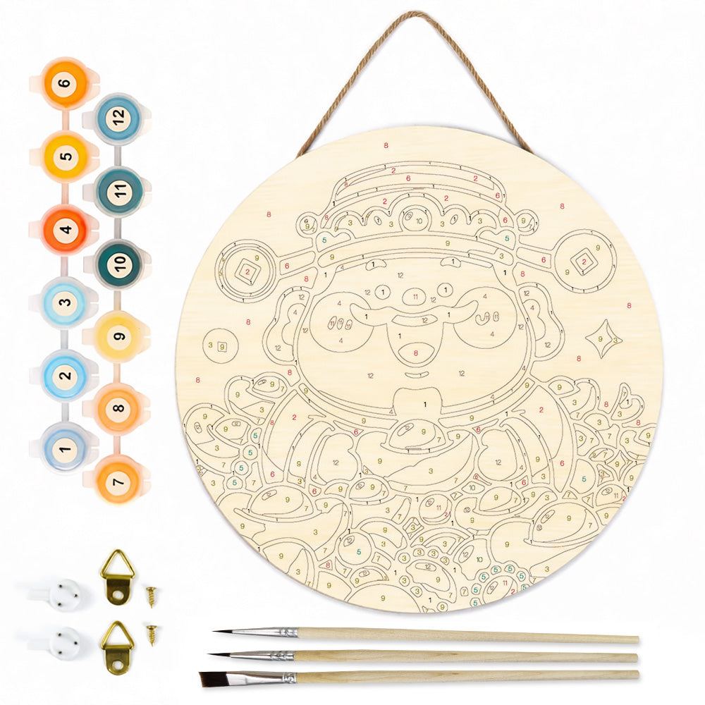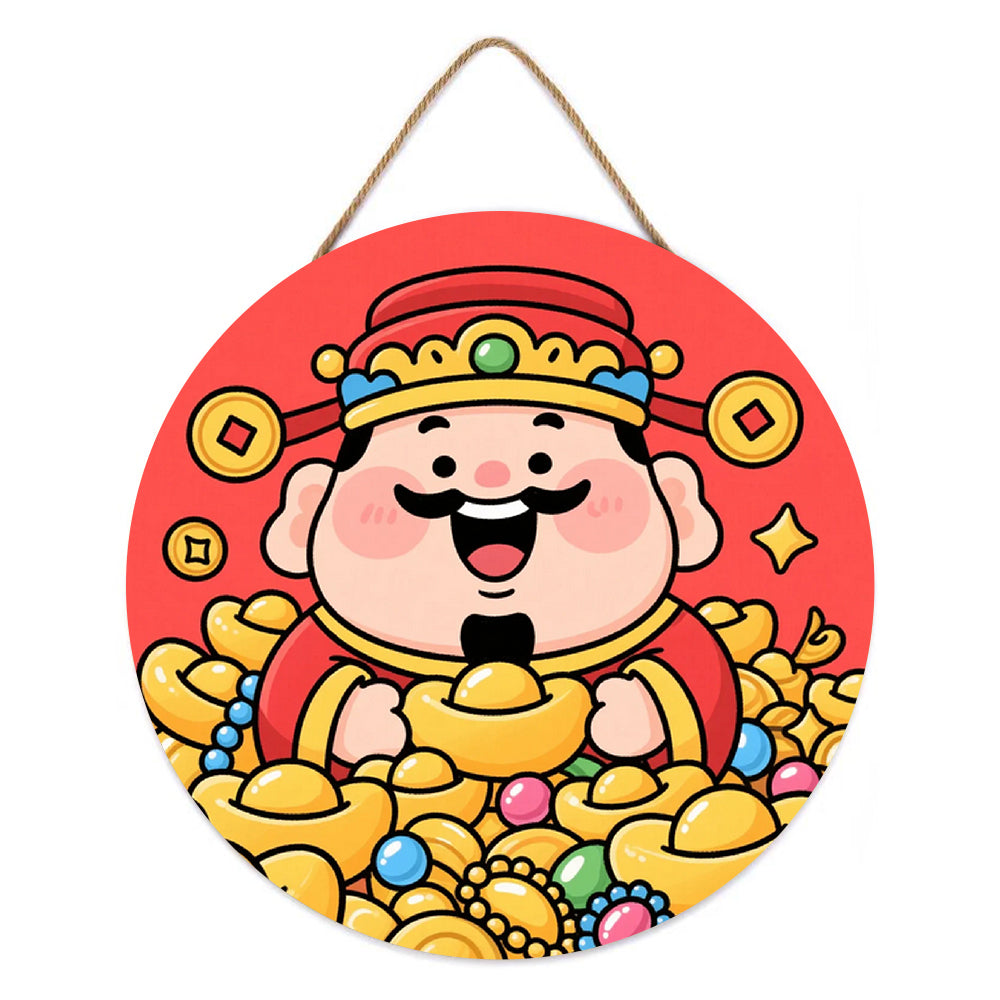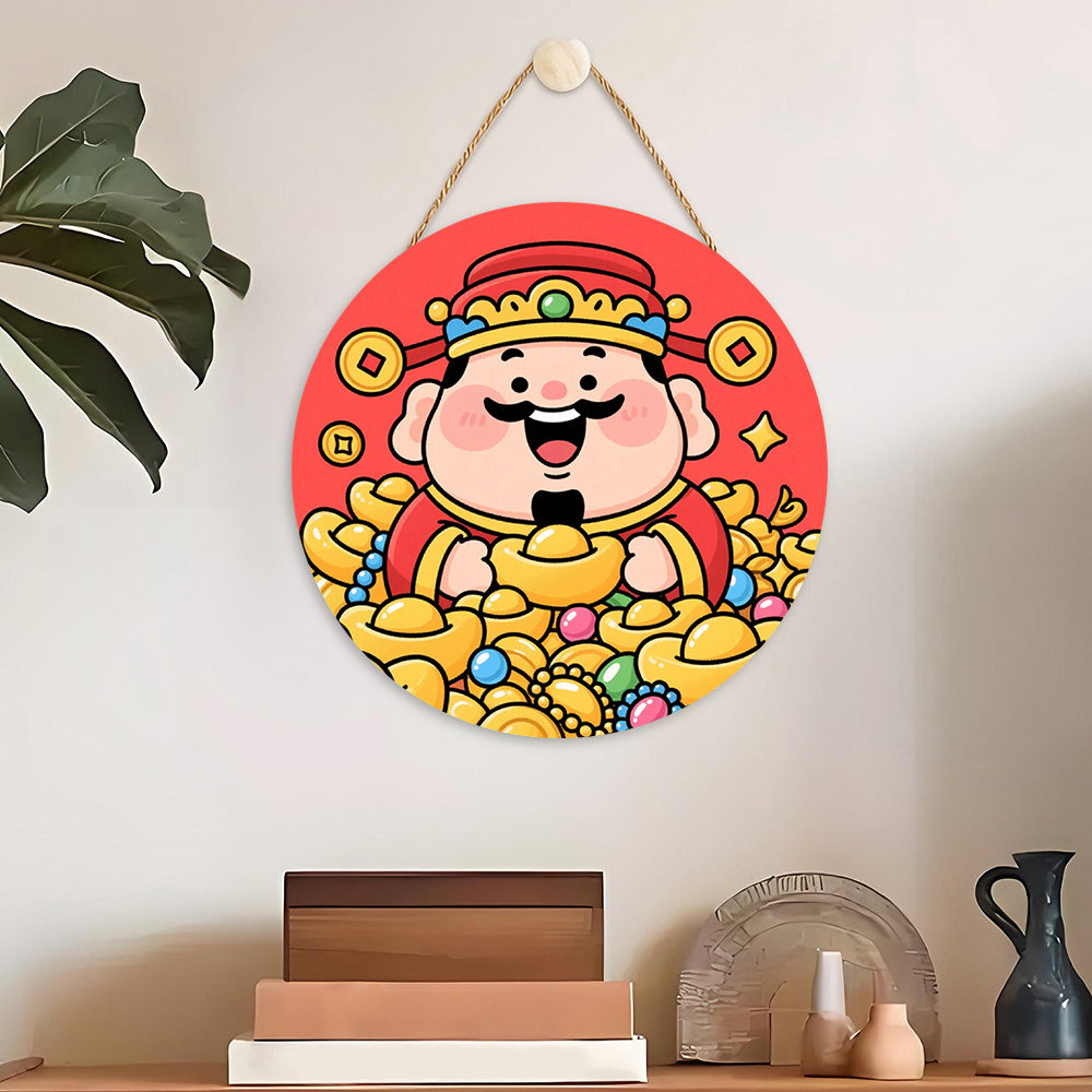 Paint by Numbers on Wood Slice - The God of Wealth Brings Many Gold Ingots