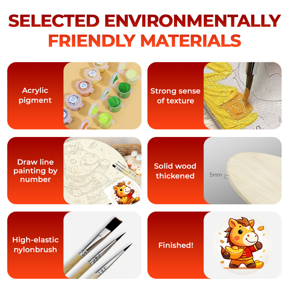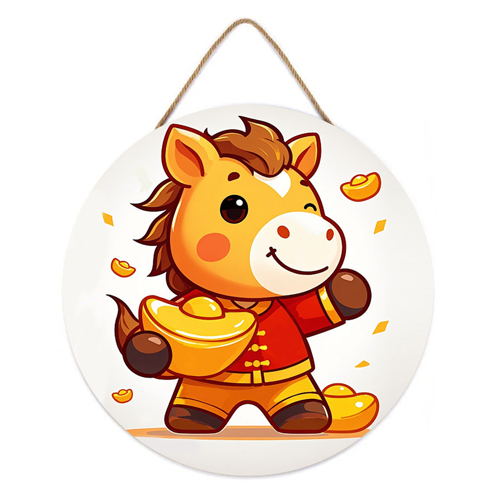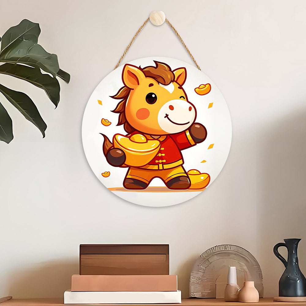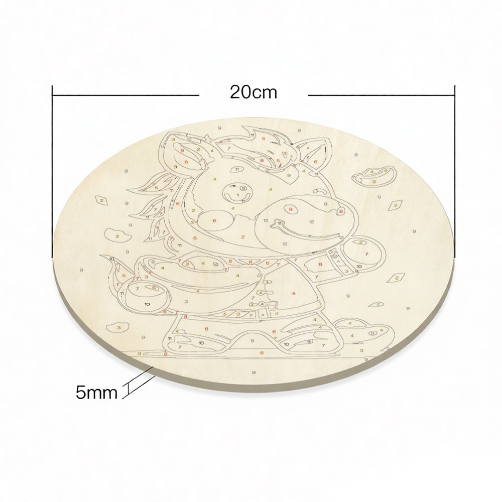 Paint by Numbers on Wood Slice - The Proud Horse Holding a Gold Ingot