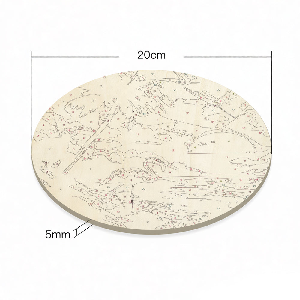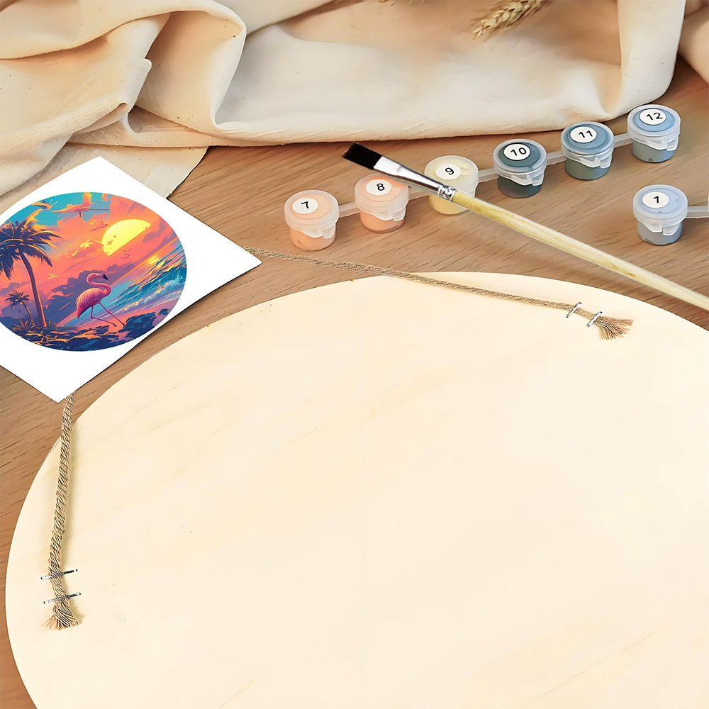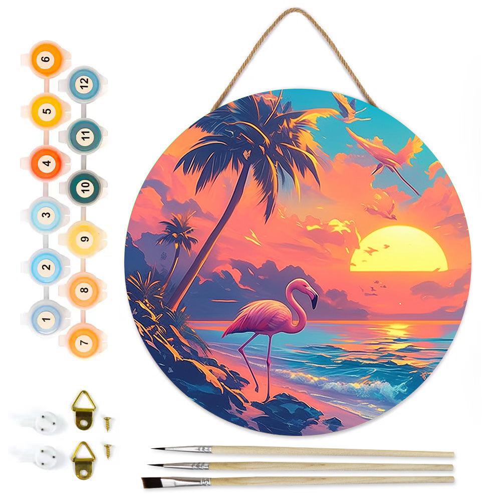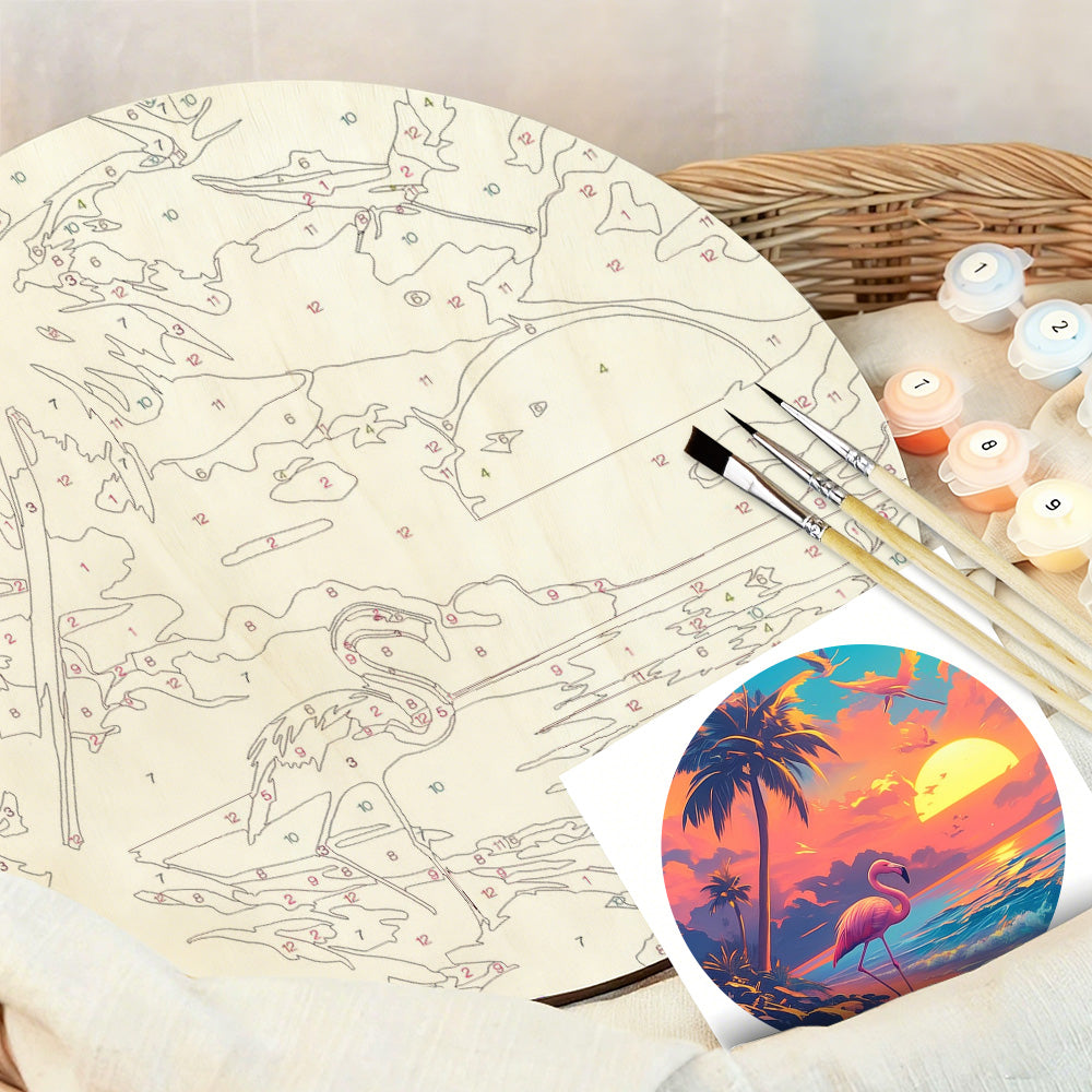 Paint by Numbers on Wood Slice - The Sea and Flamingo at Sunrise