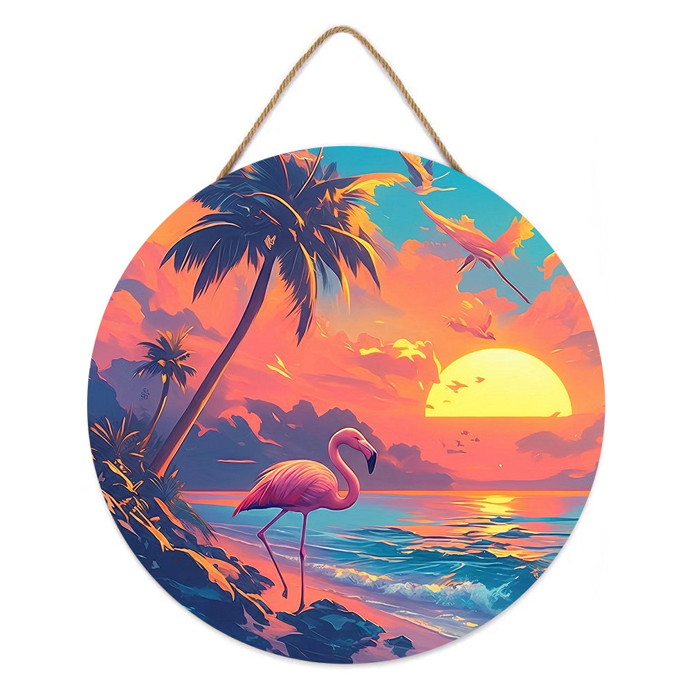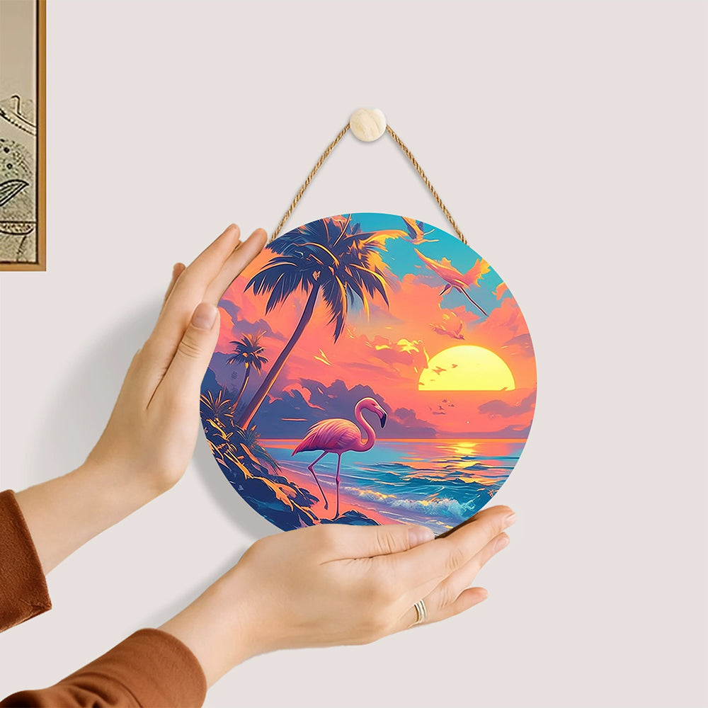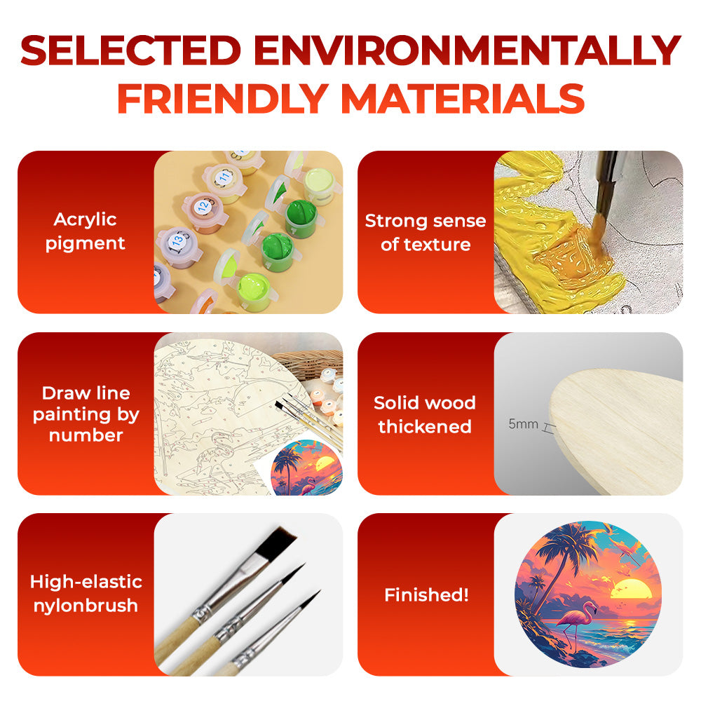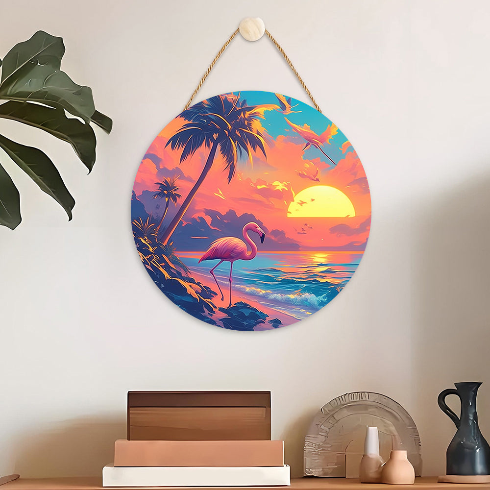 Paint by Numbers on Wood Slice - The Sea and Flamingo at Sunrise