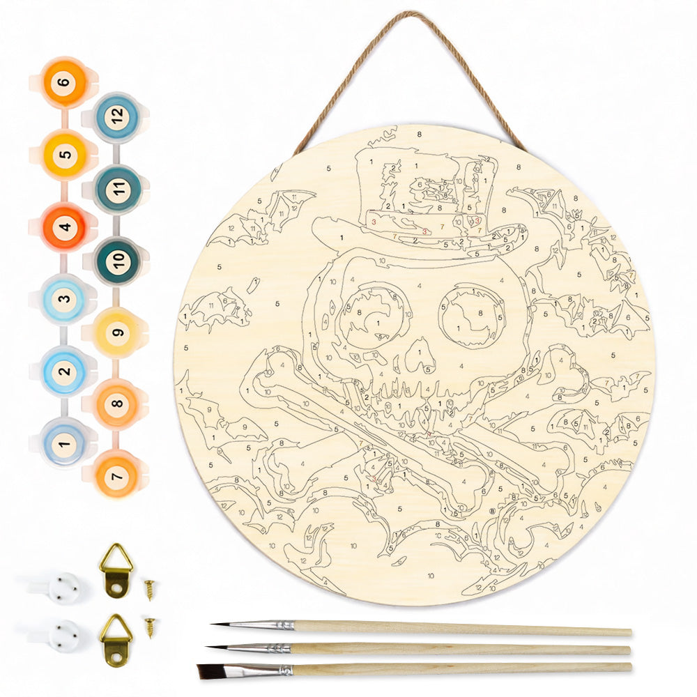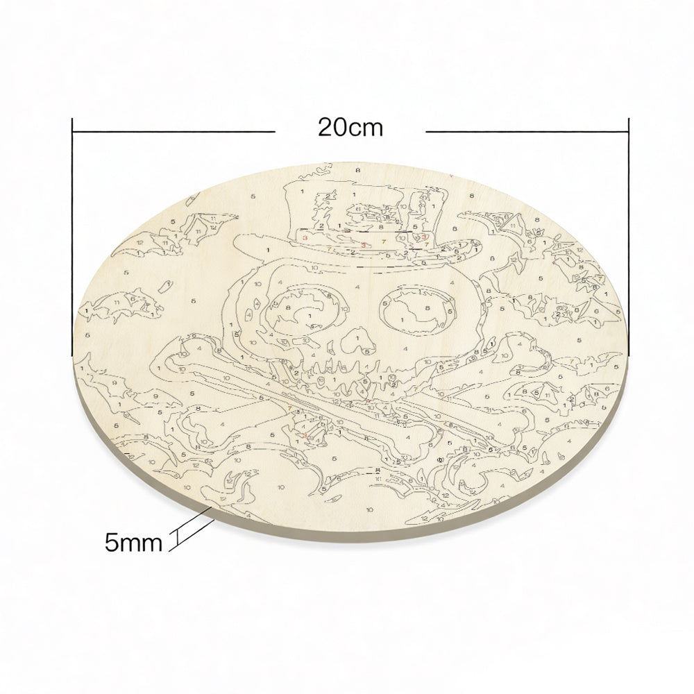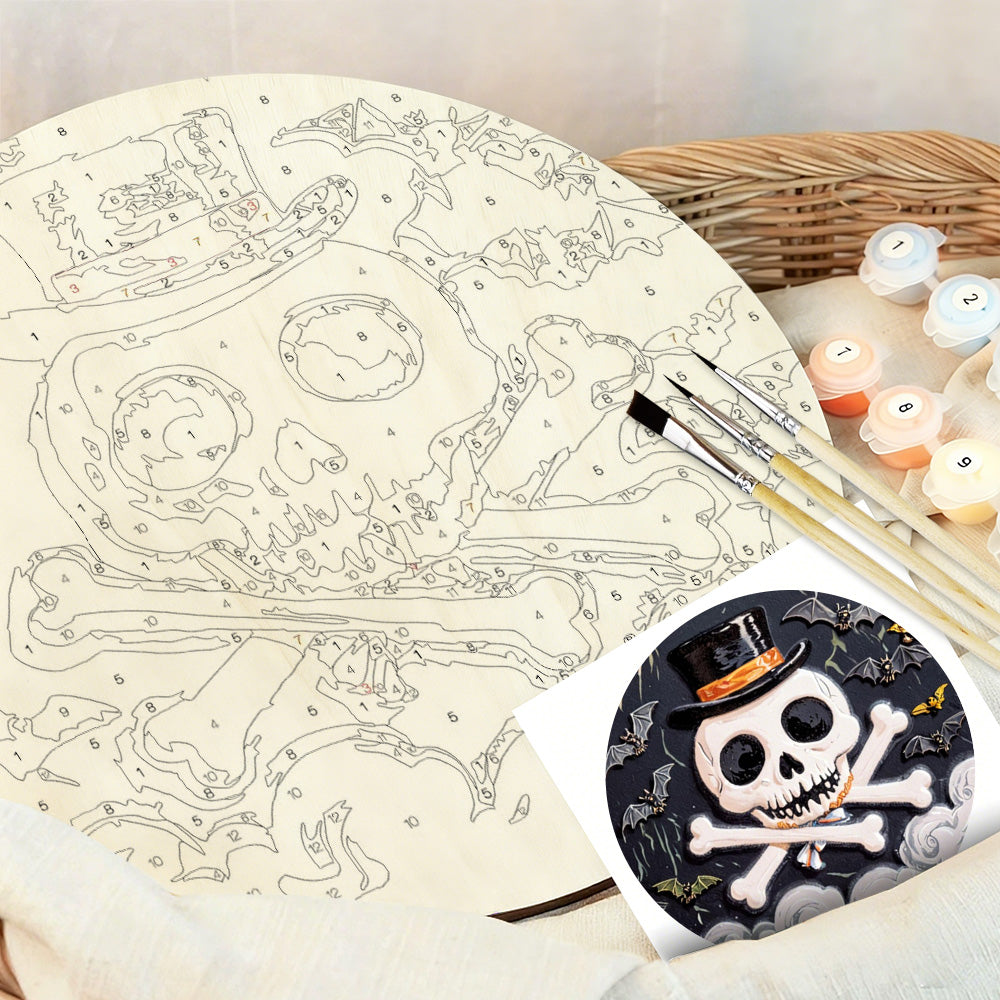 Paint by Numbers on Wood Slice - White Skull and Black Bats