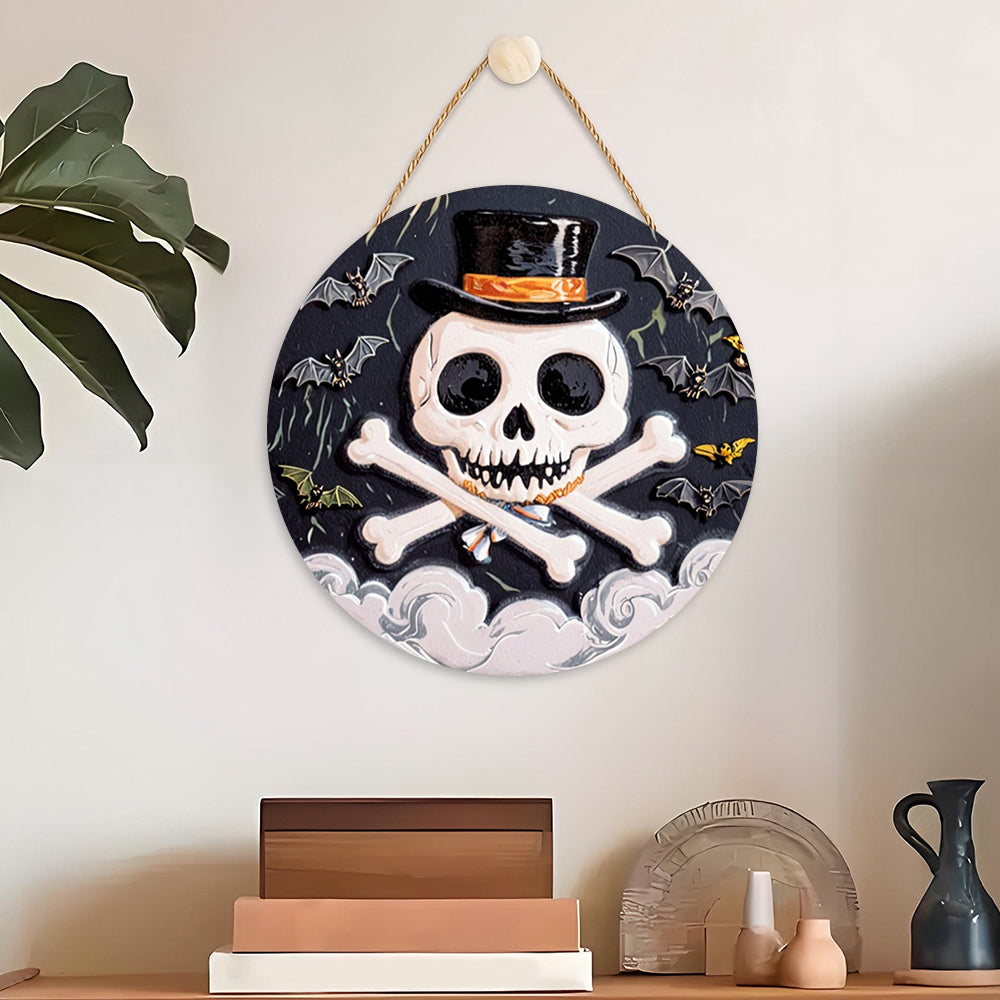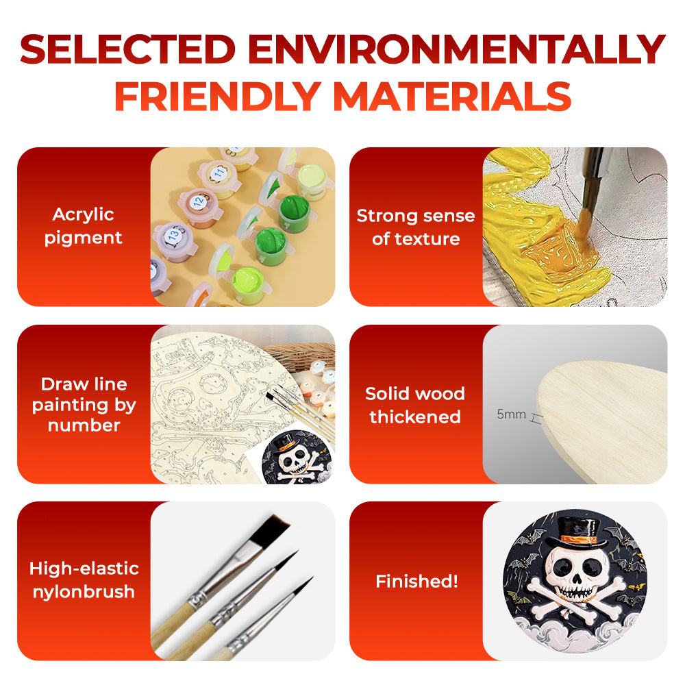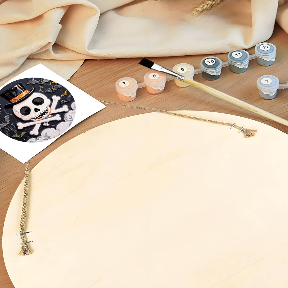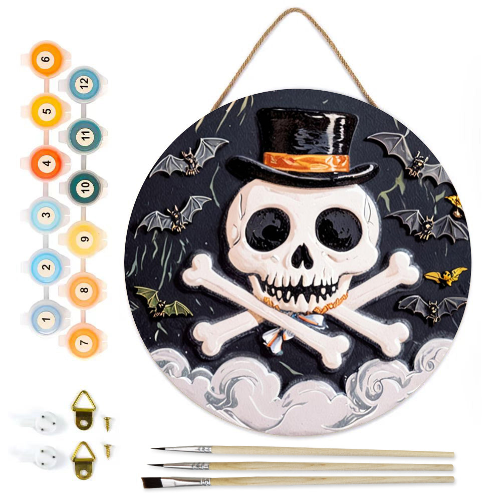 Paint by Numbers on Wood Slice - White Skull and Black Bats