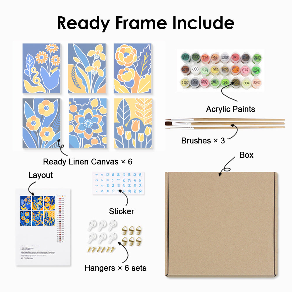 Yellow Flowers on a Blue Background 6 Pieces Mini Paint by Numbers