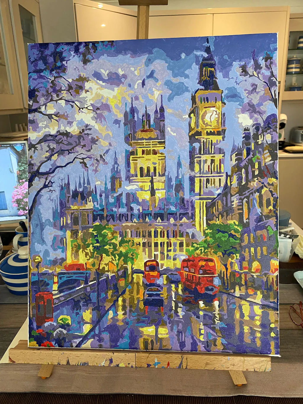 Paint by numbers is easy and anyone can do it. Each area on the canvas is numbered and corresponds to a specific colour. There is no need to mix the colours, just use the brush to colour in the appropriate areas. You can also decide the order of coloring according to your wish. Finally, you will create your own piece of artwork that you can be proud to show off to your family and friends.